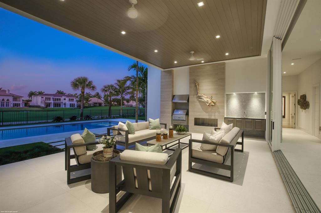 Come and discover this newly constructed modern furnished home within St. Andrews Country Club. Completed in 2019 by premier custom home builder Courchene Development. You will find elegant modern architecture throughout from your first step inside. The foyer features a stunning contemporary staircase with glass railing emphasized by a book matched marble slab wall. The great room features a lacquered built-in media center with marble ledge, clean modern ceiling with cove lighting, expansive 12' high sliding glass doors opening to the outdoor living with fireplace, BBQ grill, wet bar all overlooking the pool with wide golf course and water views. An open kitchen design makes for a seamless transition from the great room as well as an incredible layout for entertaining both small and large