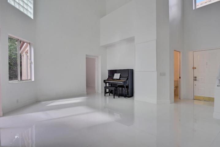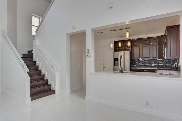 Totally upgraded 3 bdrm home in Boca Country Club. Italian porcelain tiles thruout the main level living area, family room, kitchen and master bedroom. 2nd floor is a loft area can be used as a den. 2 beddrooms and 1 bathroom . Remodeled kitchen featuring updated cabinets, stainless steel appliances, and granite counter. Twenty plus foot volume ceilings in living room. The home also offers a living room dining area, dinette, and updated powder room. Remodeled master bath with double vanity, updated shower, and separate tub. Large custom-fitted master closet. Excellent Golfing Community-NON-Equity Golf Club Community.Patio area for entertaining and cook-outs! !Maintenance Includes water,cable, lawn, painting and roof cleaning!!