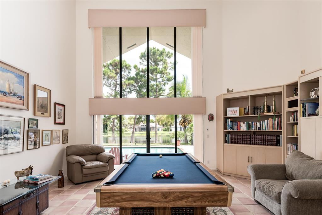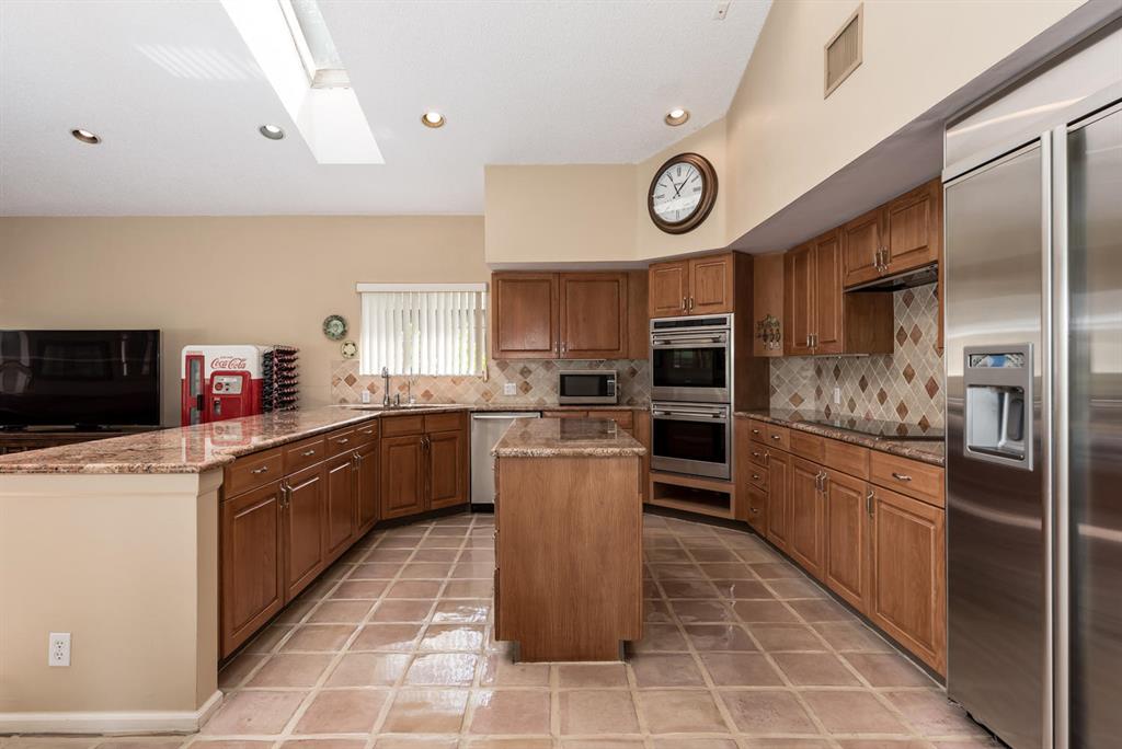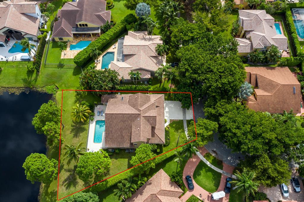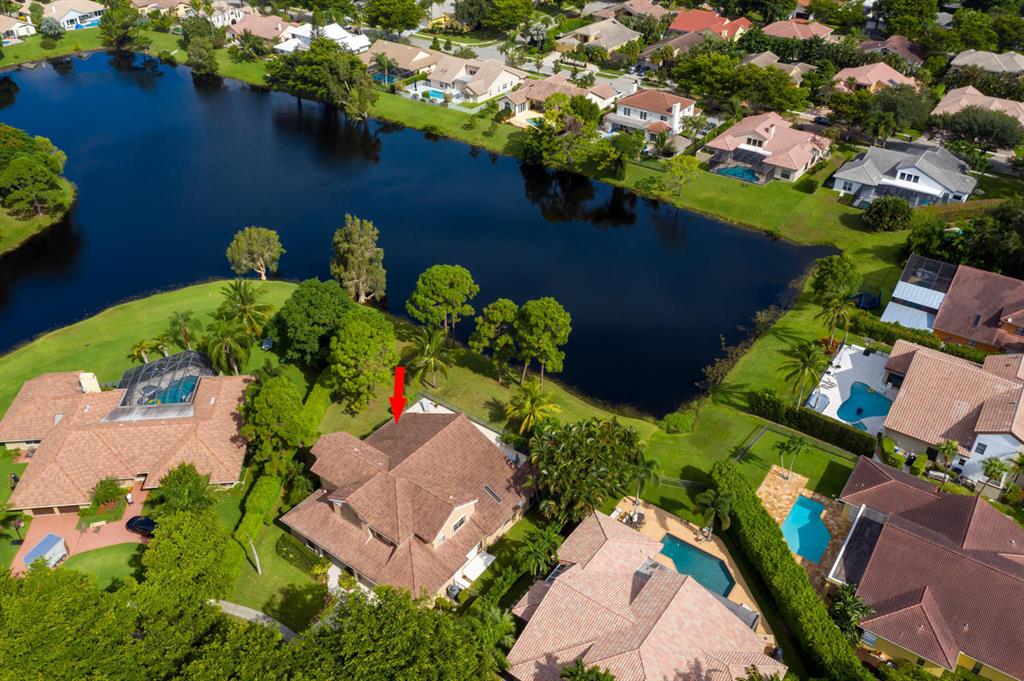 Dramatic lakefront lot with 220 feet of frontage in this sprawling 5 bedroom 5 bath, Master bedroom and office downstairs, 3 bedrooms up, volume ceilings, built in wall units and custom bookshelves, remodeled kitchen with Wolf stainless appliances, granite kitchen open to large family room,complete hurricane protection, open fenced pool with magnificent 1/2 acre lot, 3 car garage and close to community park.