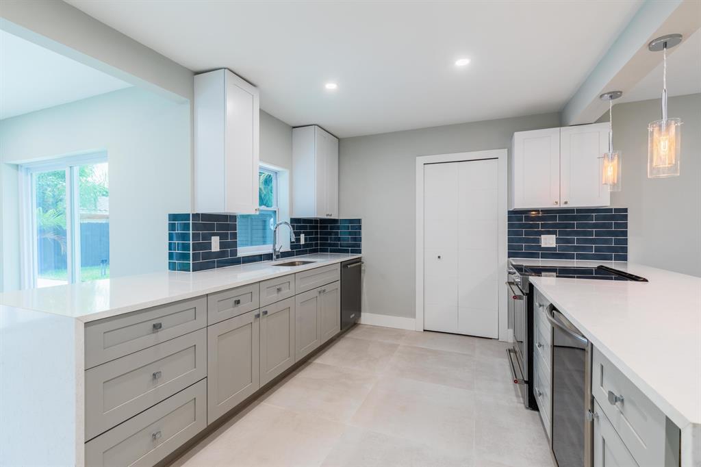 Poinsettia Heights - Renovated open concept, 3 Bedroom, 2 Bathroom pool home. Recent updates include metal roof, impact windows & doors, & coral shell paver driveway & patio. Large chef's kitchen with large breakfast bar, Kitchen Aid appliances, quartz counters, wine cooler. New interior features new 30'' porcelain tile flooring throughout, renovated bathrooms, recessed lighting, interior doors, baseboards & moldings. Updated electric. New central AC. Private fenced back yard, sprinkler system, new sod & landscape, gutters, interior & exterior paint, storage area.