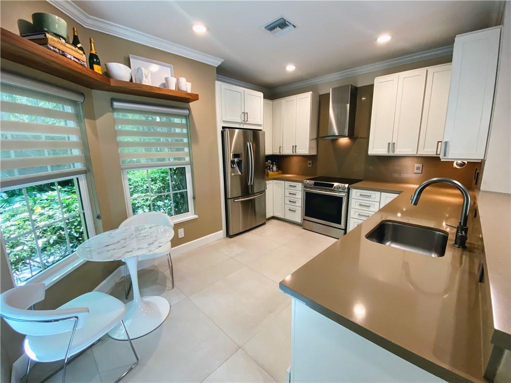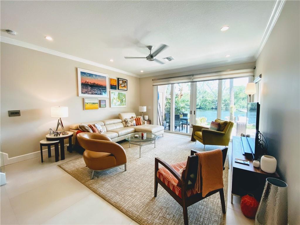 Wow, Spectacular updated Waterfront Town Home with Private Dock. Quaint Key West-Style Development of 15 homes on the South fork of The Middle River. Tree-Lined, River front Vistas from your own Corner End Unit Patio. Beautifully updated Contemporary Interior Features include stunning new Flooring through out. Dramatic open floor plan is perfect for entertaining. Large Eat-in Kitchen with great counter space & Cabinets for storage, SS Appliances, Recessed Lighting & Windows overlooking the Garden. Hurricane-Impact Windows/Doors! Master Bedroom boasts a New En Suite Bathroom, Volume Ceilings, Walk-In Closets & Full-Length Balcony! All Bathrooms have been UPDATED. Bonus Office/Den Space. Pet Friendly. Covered Parking. A few short minutes to Wilton Drive. HURRY ON THIS ONE!