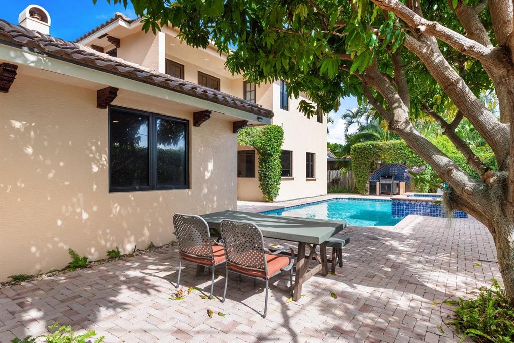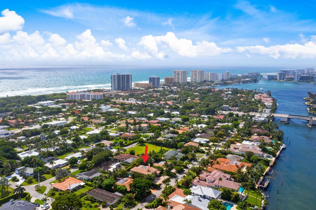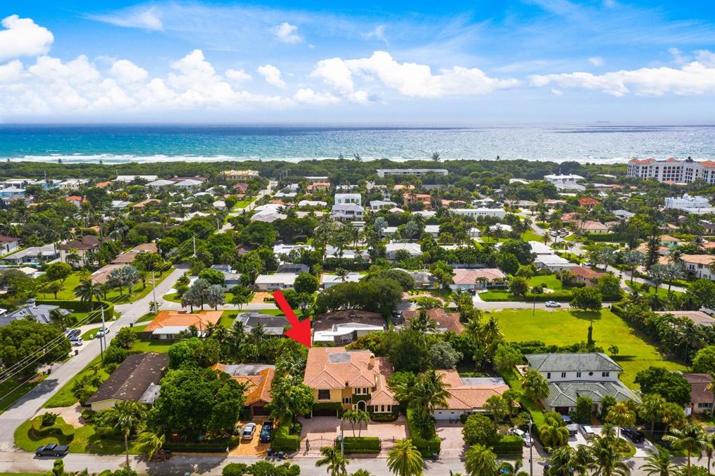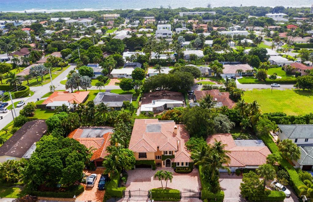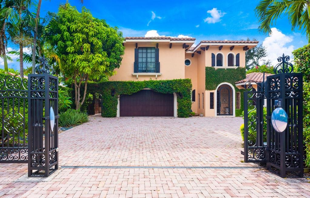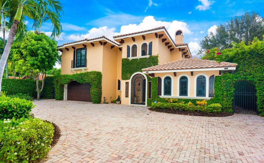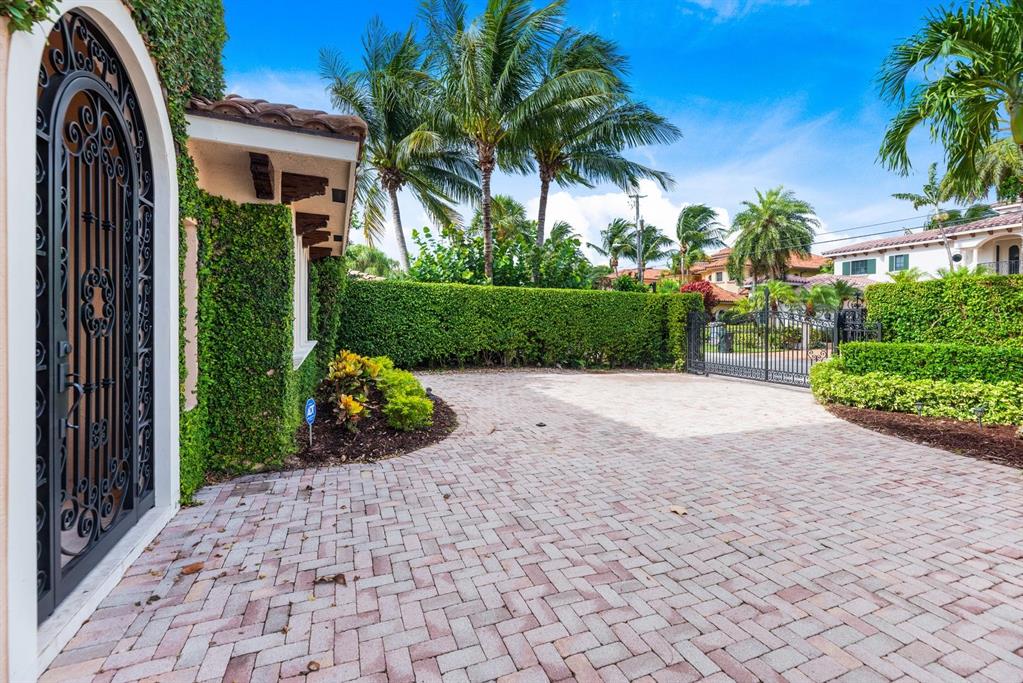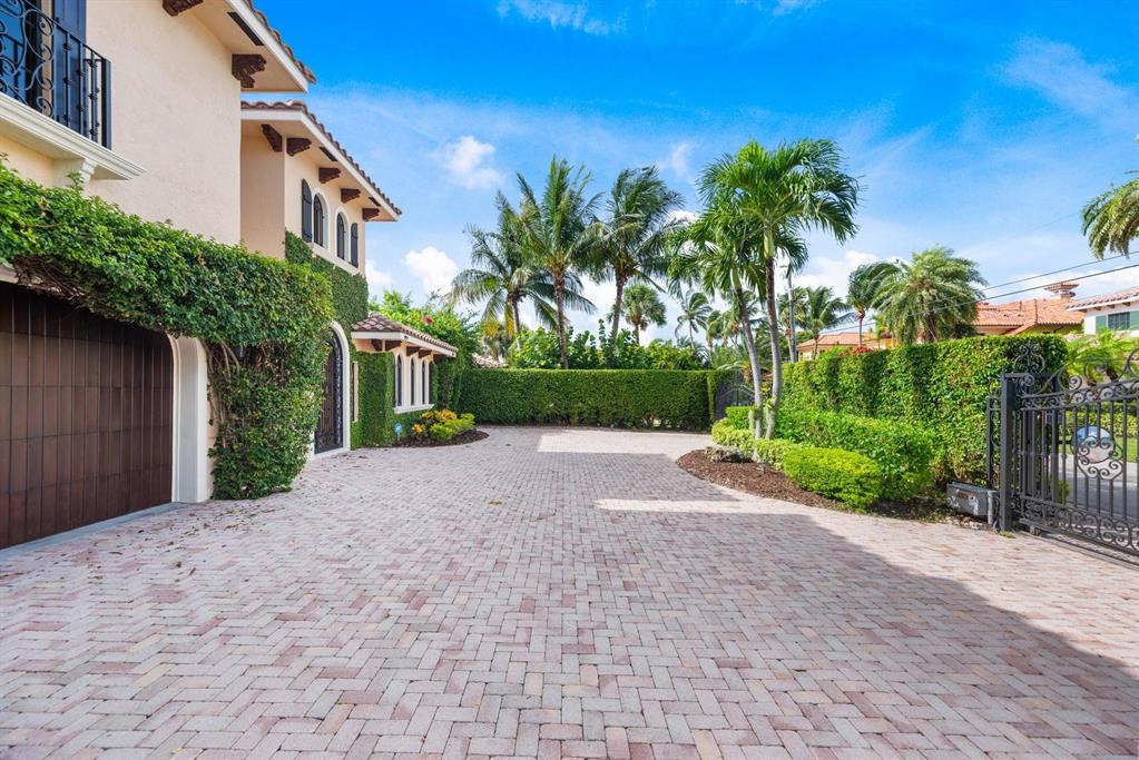 Enter this architectural beauty through electronic gates to insure total privacy. No expense has been spared in this 5 bedroom 4.5 bath custom home across from the Intracoastal and 4 blocks to the beach. Gourmet kitchen boasts Dacor gas range, New top of the line refrigerator, wine cooler, huge island and custom cabinetry. Master suite, office and guest bedroom are on the main floor, 3 bedrooms and large loft with balcony are on the 2nd. Living room has 20' ceiling and fireplace with Greco mantle. Features: marble & wood flooring, impact windows, 3 A/C zones, generator, cen vac, surroun sound, built-in closets and more.. Tropical pool/spa area is lush and private with brick pavers and a full summer kitchen. Walk to finest beach, shops and restaurants from this upscale location.