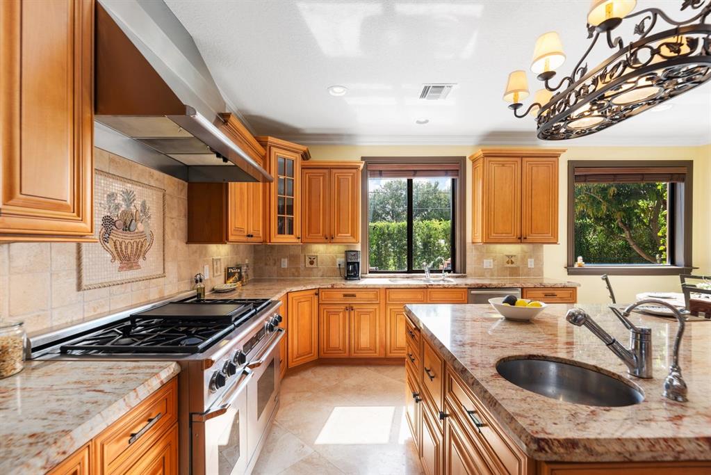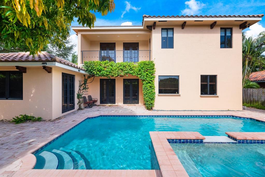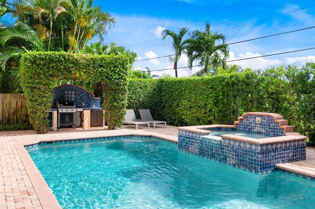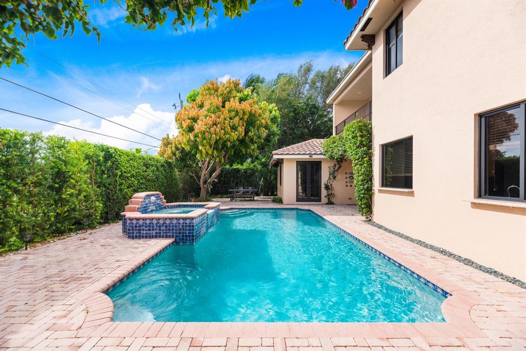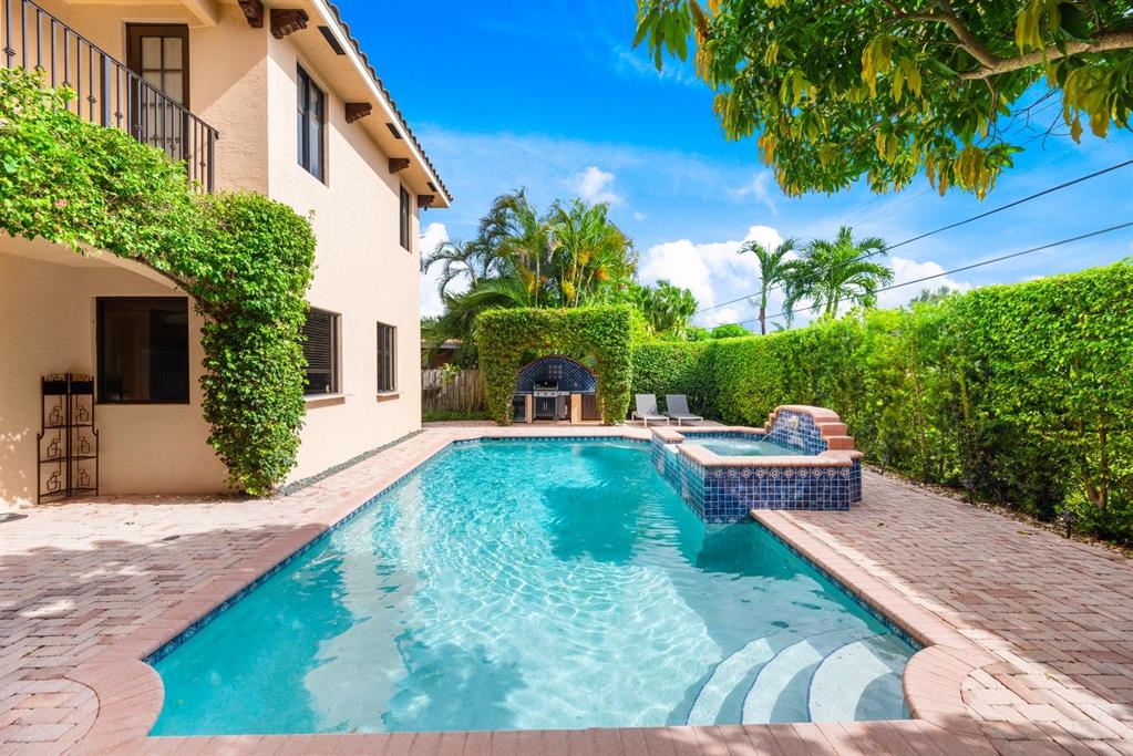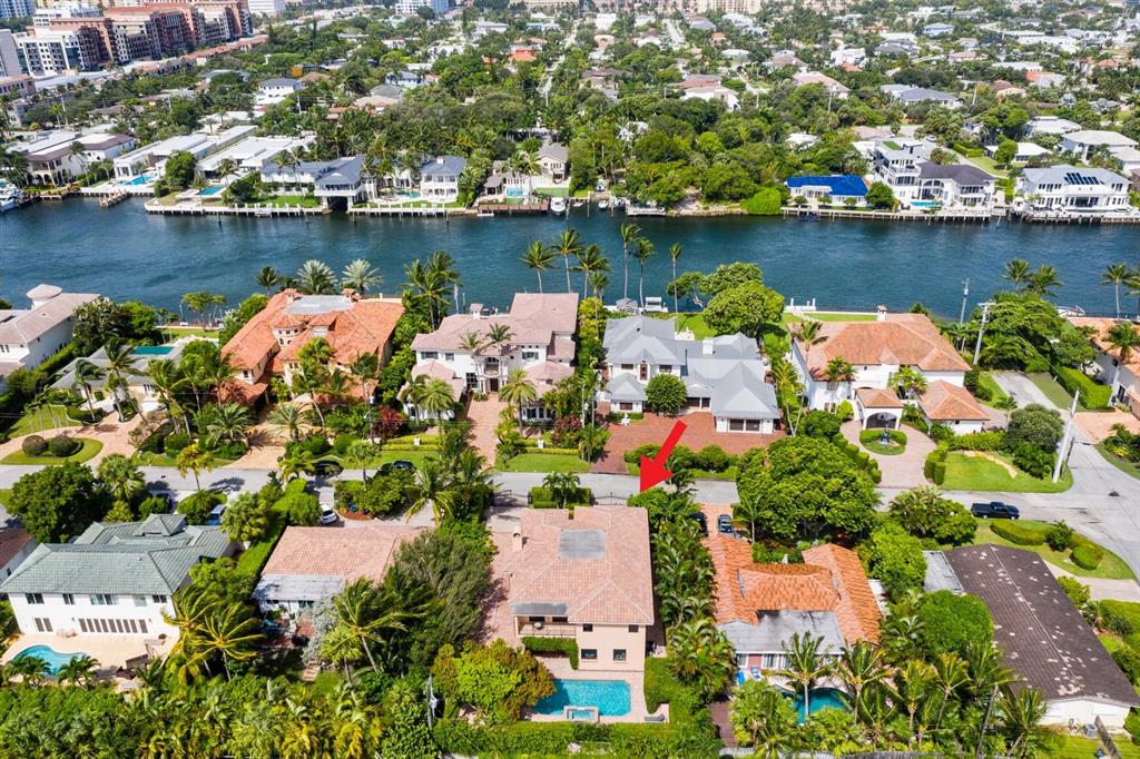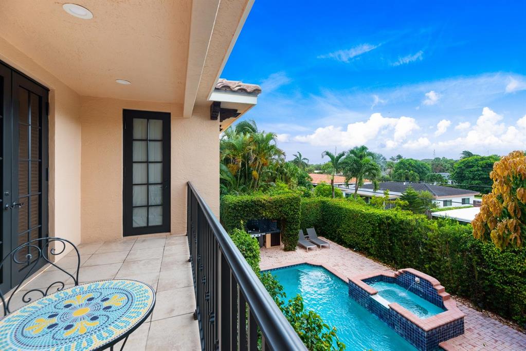 Enter this architectural beauty through electronic gates to insure total privacy. No expense has been spared in this 5 bedroom 4.5 bath custom home across from the Intracoastal and 4 blocks to the beach. Gourmet kitchen boasts Dacor gas range, New top of the line refrigerator, wine cooler, huge island and custom cabinetry. Master suite, office and guest bedroom are on the main floor, 3 bedrooms and large loft with balcony are on the 2nd. Living room has 20' ceiling and fireplace with Greco mantle. Features: marble & wood flooring, impact windows, 3 A/C zones, generator, cen vac, surroun sound, built-in closets and more.. Tropical pool/spa area is lush and private with brick pavers and a full summer kitchen. Walk to finest beach, shops and restaurants from this upscale location.