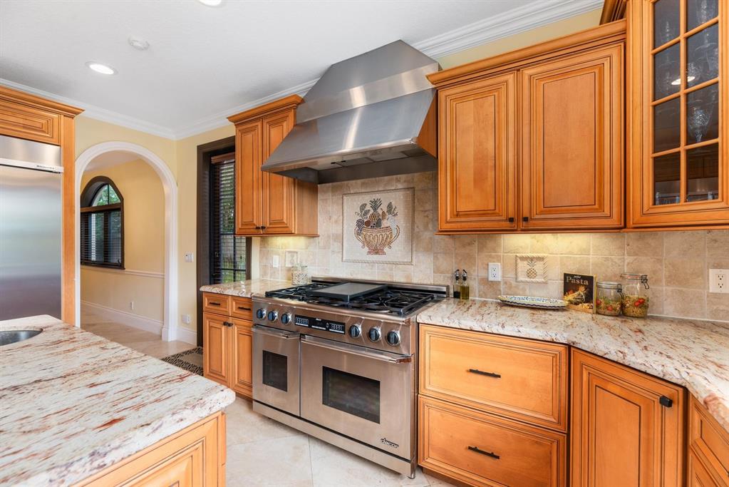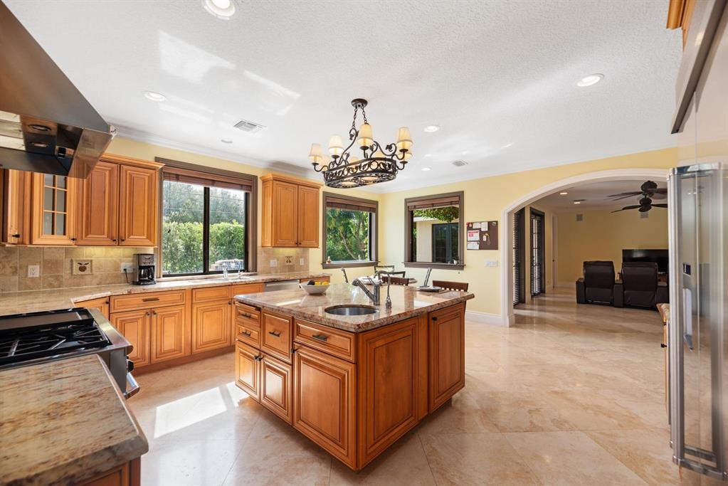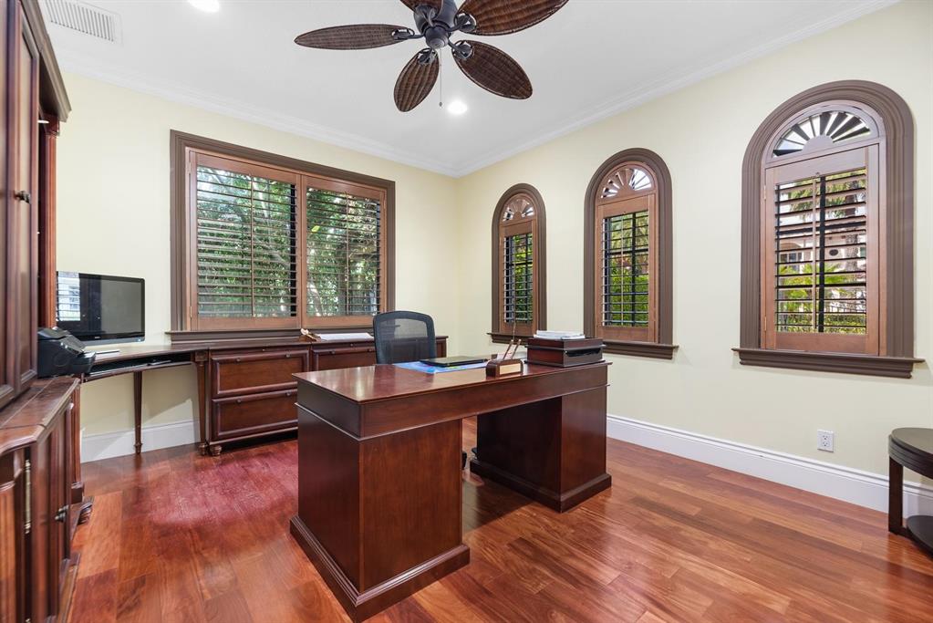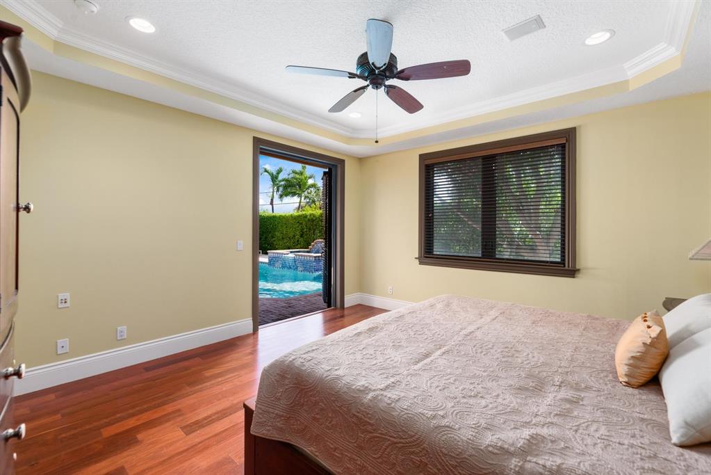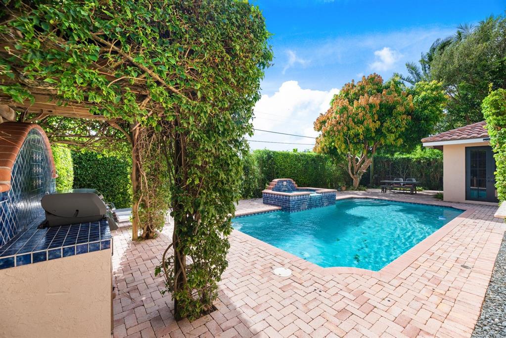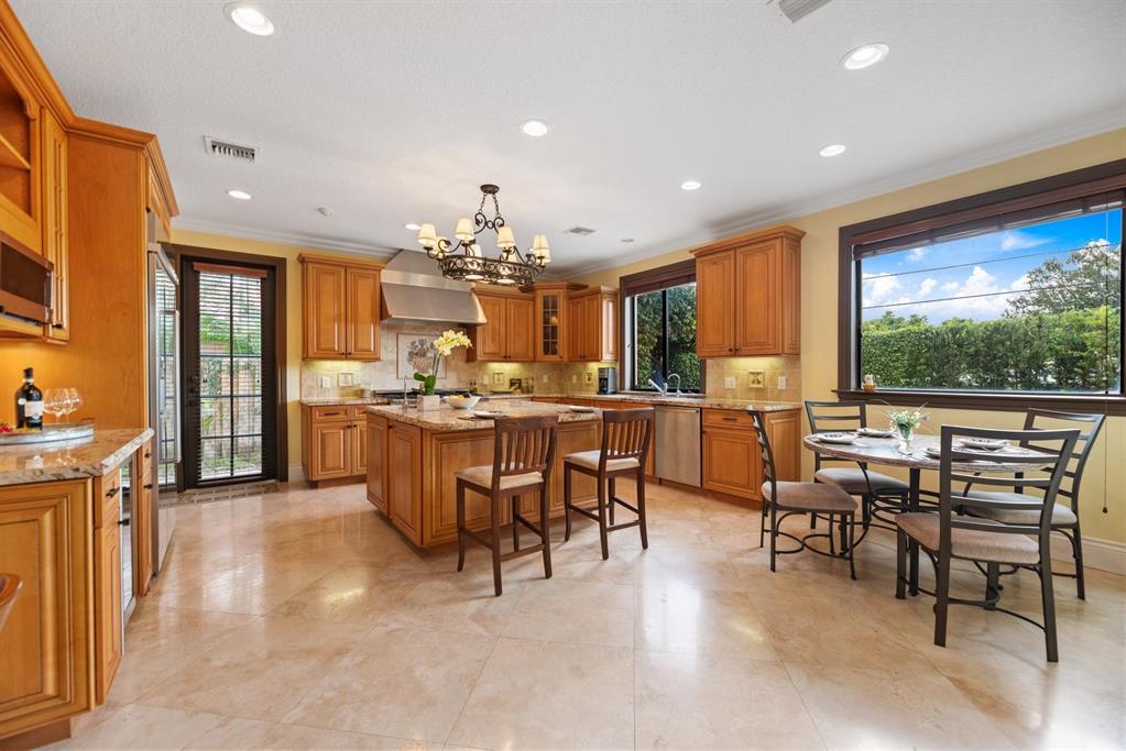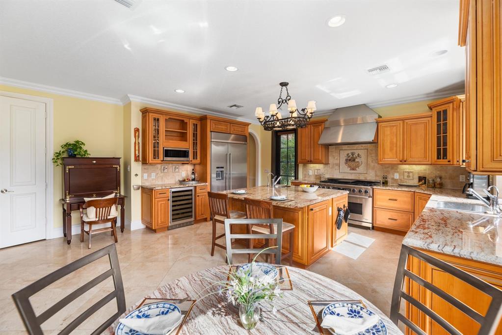 Enter this architectural beauty through electronic gates to insure total privacy. No expense has been spared in this 5 bedroom 4.5 bath custom home across from the Intracoastal and 4 blocks to the beach. Gourmet kitchen boasts Dacor gas range, New top of the line refrigerator, wine cooler, huge island and custom cabinetry. Master suite, office and guest bedroom are on the main floor, 3 bedrooms and large loft with balcony are on the 2nd. Living room has 20' ceiling and fireplace with Greco mantle. Features: marble & wood flooring, impact windows, 3 A/C zones, generator, cen vac, surroun sound, built-in closets and more.. Tropical pool/spa area is lush and private with brick pavers and a full summer kitchen. Walk to finest beach, shops and restaurants from this upscale location.