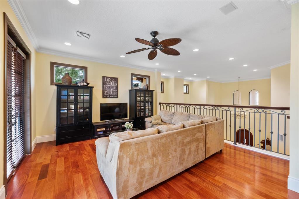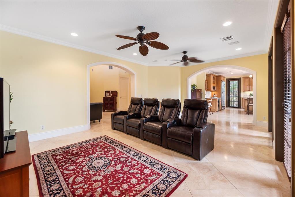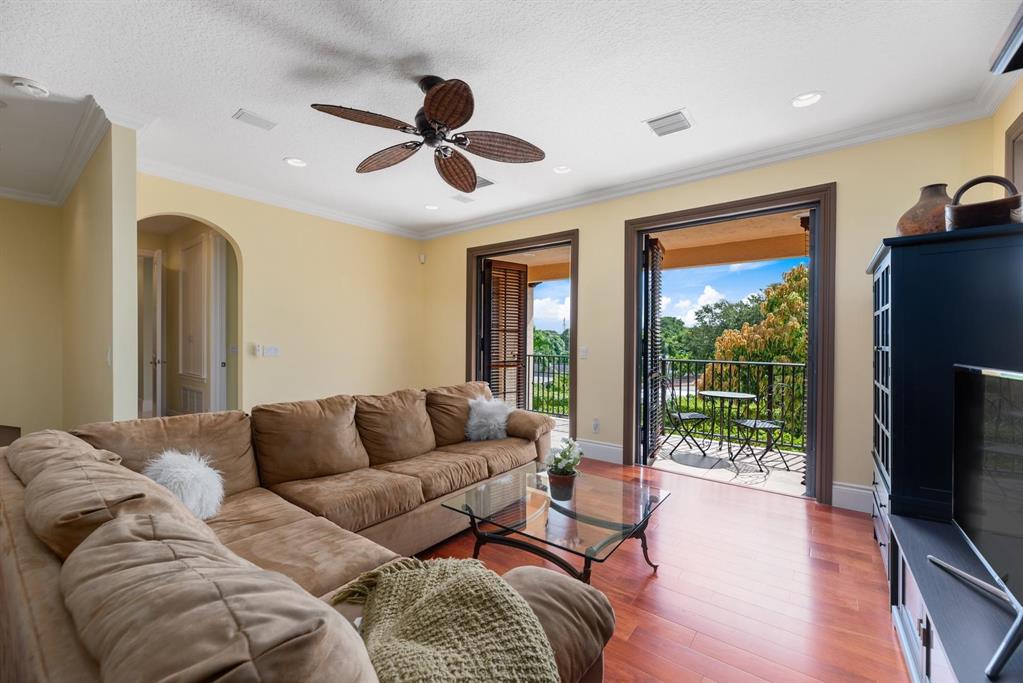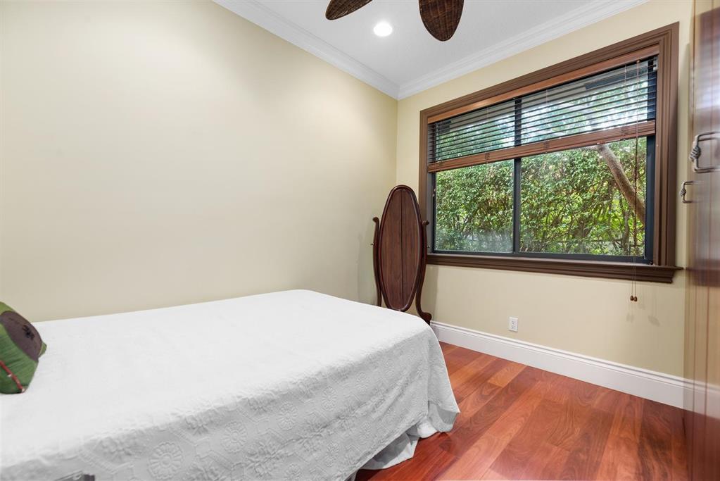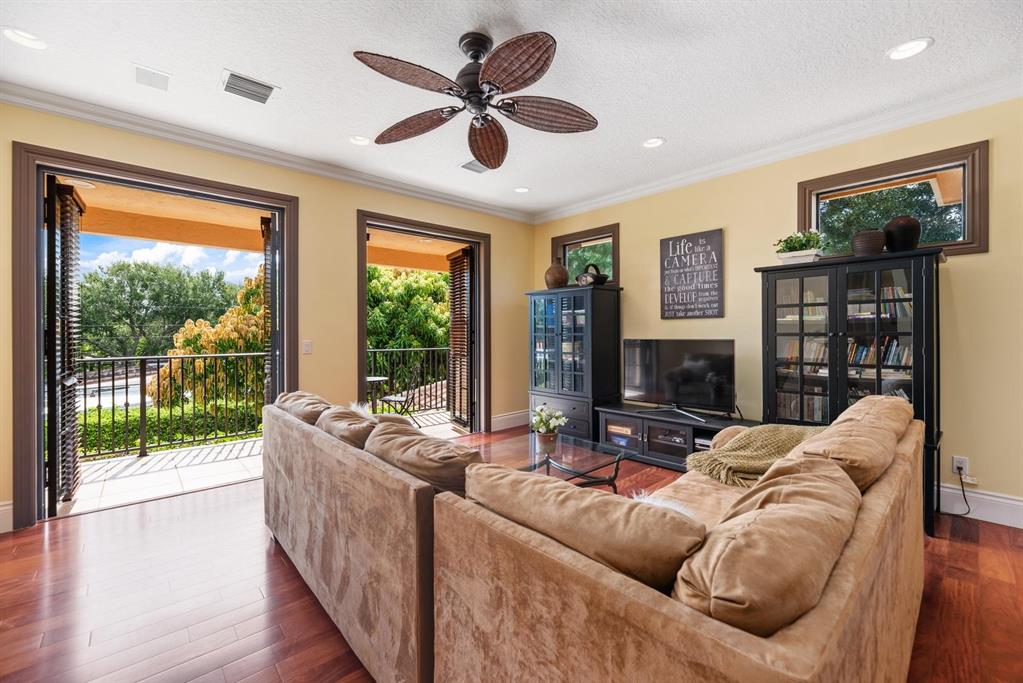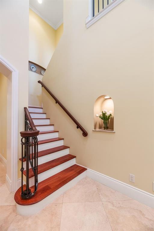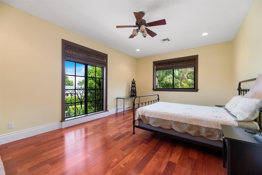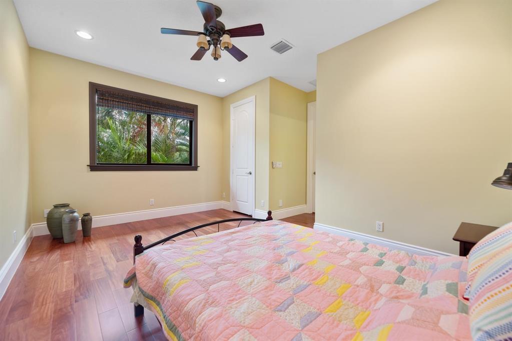Enter this architectural beauty through electronic gates to insure total privacy. No expense has been spared in this 5 bedroom 4.5 bath custom home across from the Intracoastal and 4 blocks to the beach. Gourmet kitchen boasts Dacor gas range, New top of the line refrigerator, wine cooler, huge island and custom cabinetry. Master suite, office and guest bedroom are on the main floor, 3 bedrooms and large loft with balcony are on the 2nd. Living room has 20' ceiling and fireplace with Greco mantle. Features: marble & wood flooring, impact windows, 3 A/C zones, generator, cen vac, surroun sound, built-in closets and more.. Tropical pool/spa area is lush and private with brick pavers and a full summer kitchen. Walk to finest beach, shops and restaurants from this upscale location.