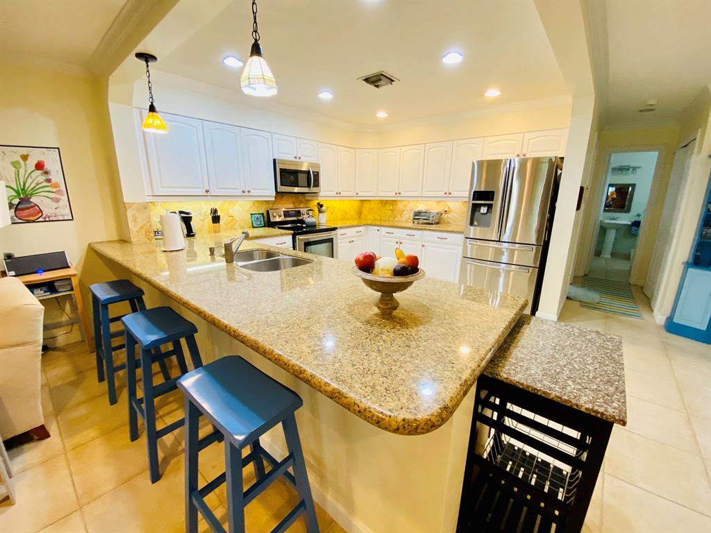 This Beautiful, spacious townhome is located in the heart of Central Boca Raton. Features a luxurious gourmet kitchen open to the living room, huge granite breakfast bar and countertops, Craft Made wood cabinetry, high hats and drop lighting. Lush, tropical garden is accessible from the living room. 1 year old roof, wood burning fireplace in family room, vaulted ceilings, crown molding, plantation shutters, French doors, solid wood steps, 18.5' tile downstairs and laminate flooring upstairs. Master bedroom features a huge walk in closet and French doors leading to the terrace, dual sinks and jacuzzi style tub. Upstairs Loft area would be perfect as an office or sitting area. Inside laundry, 3 full bathrooms, spacious 1 car garage and central vac. Verde School!