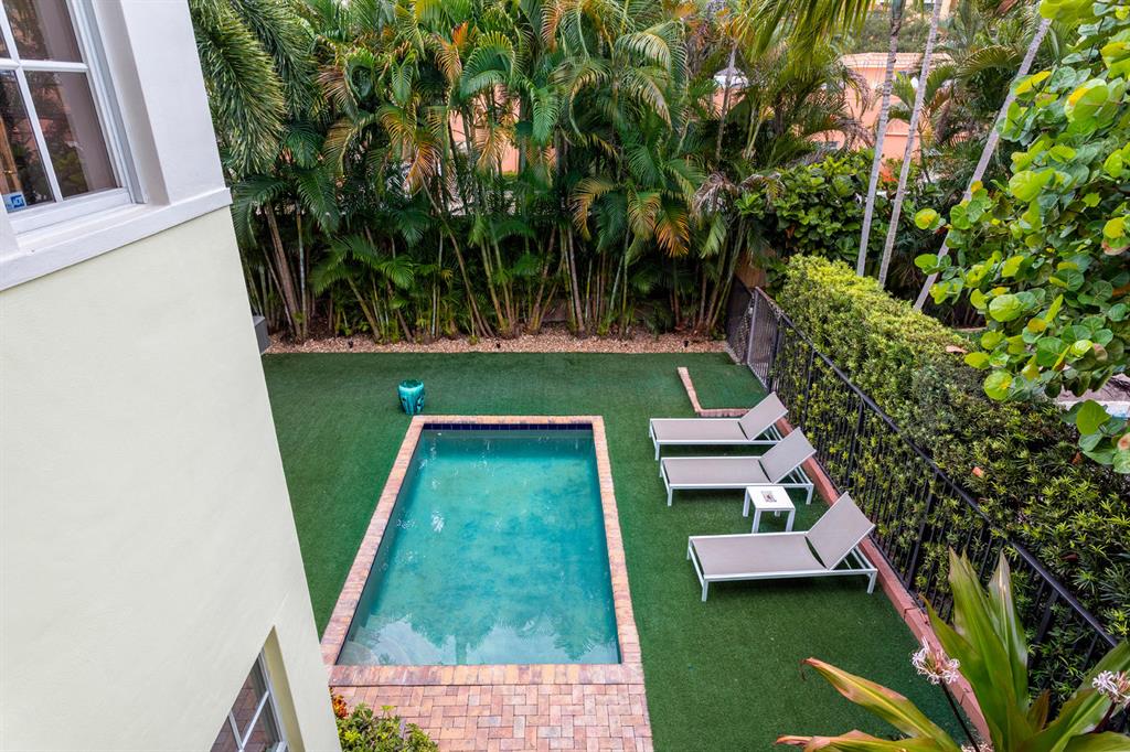 Rarely available END UNIT townhome in the highly desirable East Boca. Bright & airy, lives like a single family with a private backyard featuring a pool and lush landscaping. 3BD/2.1BA/2CG + lounge area with over 3,500 total square feet. Contemporary living with exotic tigerwood floors throughout and dramatic 10' ceilings. Chef's Kitchen features top-of-the line Downsview soft-close cabinetry with LED lighting, Quartz countertops, Thermador appliances, induction cooktop, and 80-bottle wine fridge. Master suite features his & hers California walk-in closets, and a private balcony overlooking pool. Don't miss the opportunity to live in an excellent A+ school district- just steps to Mizner Park, Royal Palm Plaza, the beach, and so much more!