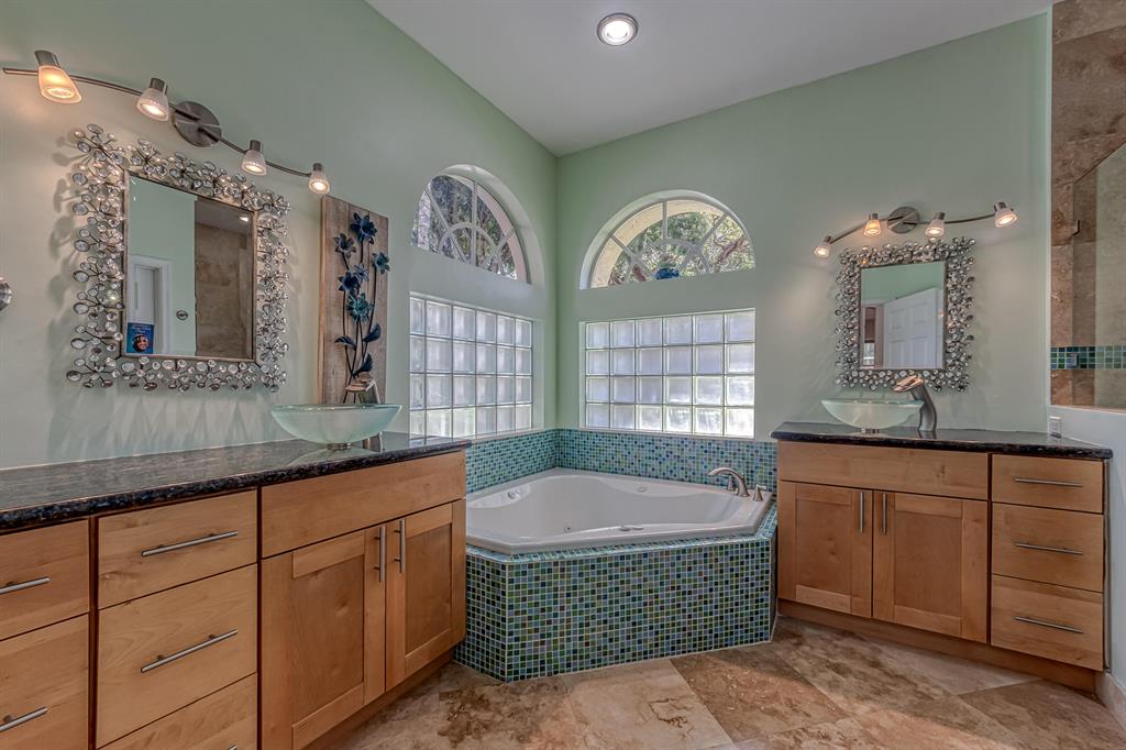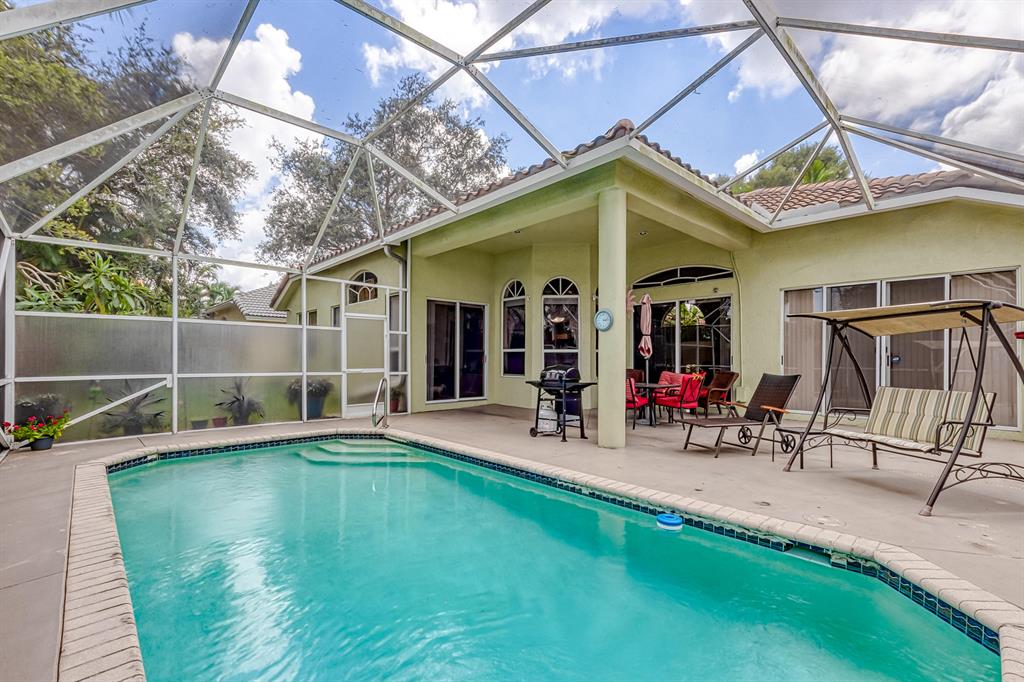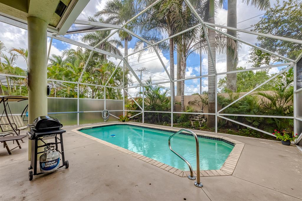 Completely Remodeled home in 2017 with granite counter tops & wood cabinets in the kitchen, updated appliances, updated bath rms, master bath rm has jacuzzi tub & separate shower, roof 12/1/2017, A/C 2017, newer hot water heater, ceramic tile flrs in living , Fam & Kit, wood flrs in master Bed rm and bamboo floors in the 2nd & 3rd bed rms. Kitchen opens up to the family rm. Split bed rooms. Separate living, dining & family areas. Breakfast bar and breakfast nook. Screened in pool with covered patio. See the pool patio from a Master, Living, Kitchen & Fam Rms. Nothing to do to this home. Move right into this home. Gated comm with pool, tennis and playground. HOA covers lawn care, sprinklers, manned gate and common areas.