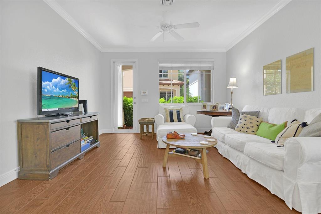 Price Adjusted! RARELY AVAILABLE DOWNTOWN EAST BOCA LOCATION. Spacious open layout with high ceilings,crown mouldings, all impact doors and windows, gourmet kitchen with double oven, GAS STOVE expanded island featuring countertop and backsplash direct imported from Italy and made from crushed shells, ceramic wood floors throughout bottom floor, interchangeable very large living and dining rooms.Brand New A/C system. Large great room perfect for families, large master bedroom with tray ceilings. Master bath with jacuzzi tub and double vanities in the same imported from Italy countertops as in the kitchen and large walk in shower and separate toilet room. All large guest bedrooms have their own large walk-in closet. Private front porch with pr