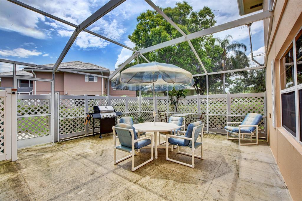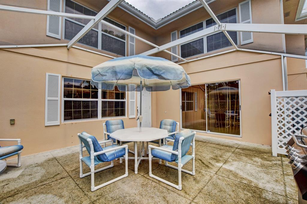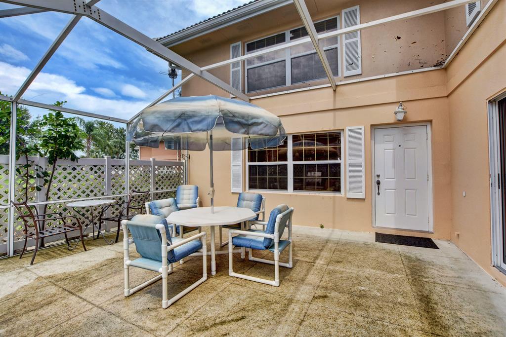 Enjoy FL living in this lovely Divosta townhome privately located within Stamford at the Villages! Sold furnished, this spacious unit opens to large green space with 2 bedrooms, 2.5 baths & courtyard patio completely screened and fenced - perfect for relaxing or entertaining!2 large master suites on 2nd floor with their own private bathroom. Large open eat-in kitchen with separate dining area, half bath downstairs with washer & dryer. Original owners have taken great care of this home. Located in the heart of West Palm Beach, this PET-FRIENDLY & RENTABLE community is close to everything including PB outlet mall, downtown restaurants and shopping, spring training baseball fields, main highways and PBI Airport. Low HOA includes exterior insurance, roof maintenance and water.