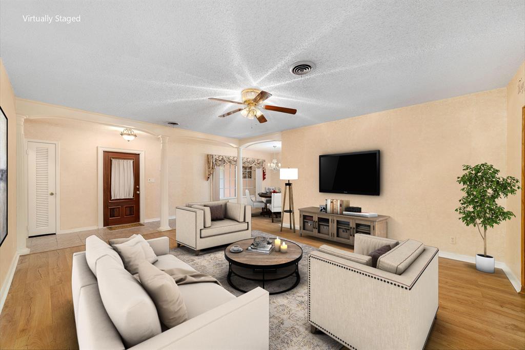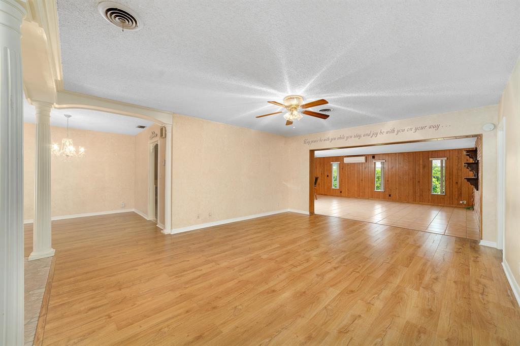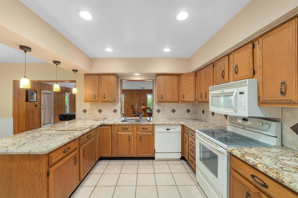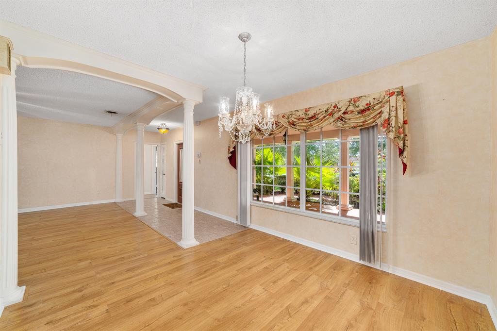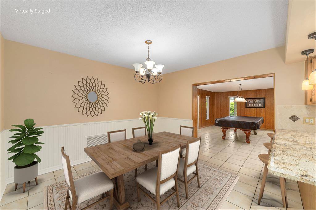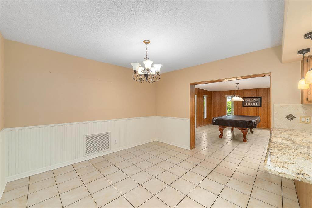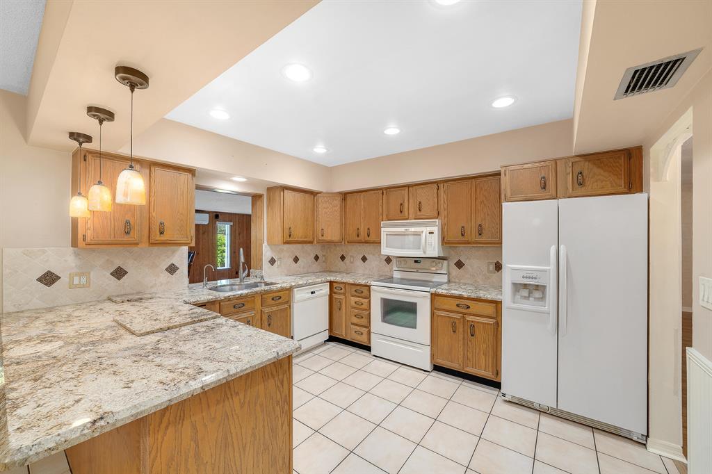 This well maintained 3 bedroom, 2 bathroom home has 2,634 square feet house and sits on a 0.31 acre lot. The home features hurricane impact windows and doors throughout. The kitchen has solid oak cabinets and features stunning granite countertops, has bar seating and an eat-in breakfast area! Off the kitchen is a large walk-in pantry closet/prep area. The flooring is a combination of new Pergo, water-proof flooring and tile. The home features a great room that is perfect for entertaining! The billiards/pool table and high-top set is included with the home. The backyard oasis offers a covered and screened patio, which is surrounded by lush landscaping for extra privacy. The home has a whole house generator with a 500 gallon propane tank. This home is extremely secure, some of the deta