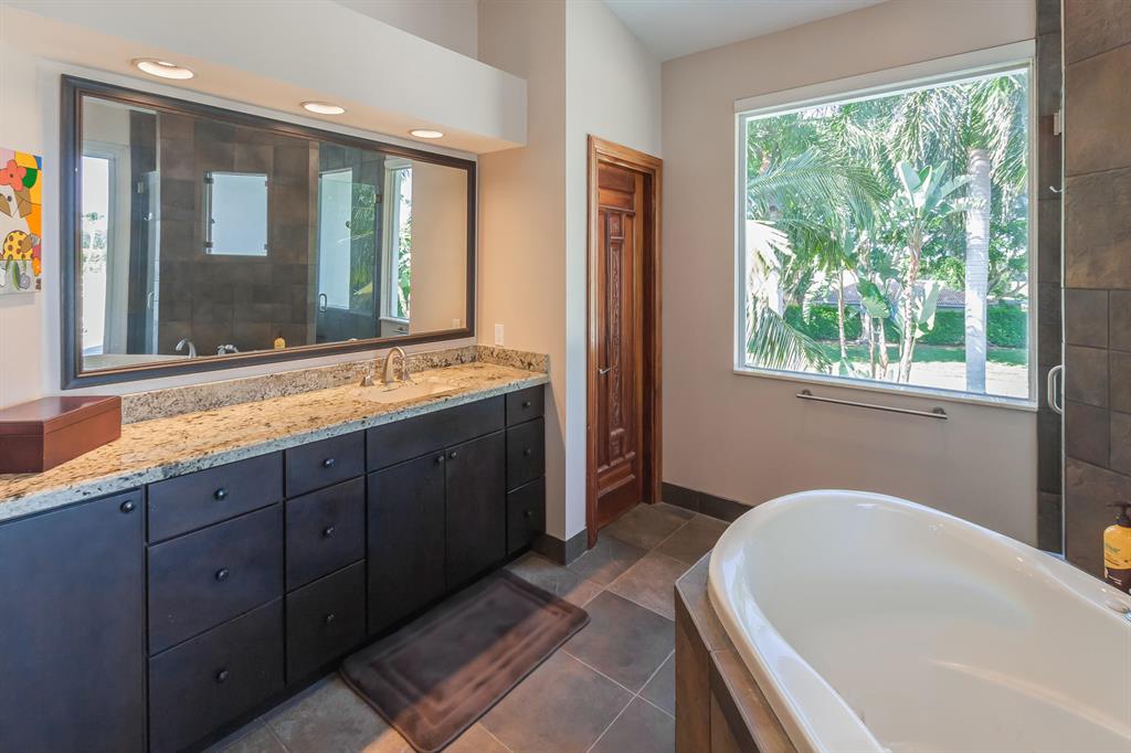 [--NOW UNDER APPRAISED VALUE OF $1,060,000--]. Have a large family and want to keep them safe? This golf-front 2-story 5800 sqft 6br renovated East Boca 'entertainment bunker' with space that can fit 125 people is built to withstand mother nature's most irate episodes in comfort, security, and style. On a corner lot with only 1 neighbor enjoy the 180 degree golf-horizon vista and private enclosed salt pool with outdoor entertainment area. Complete hurricane protection and a reinforced metal roof far exceeds NOA code standards (2008 w/50 year transferable warranty), and the only effect of a Category 5 storm may be a much wider view because for sure this place will ride it out with ease! (more)