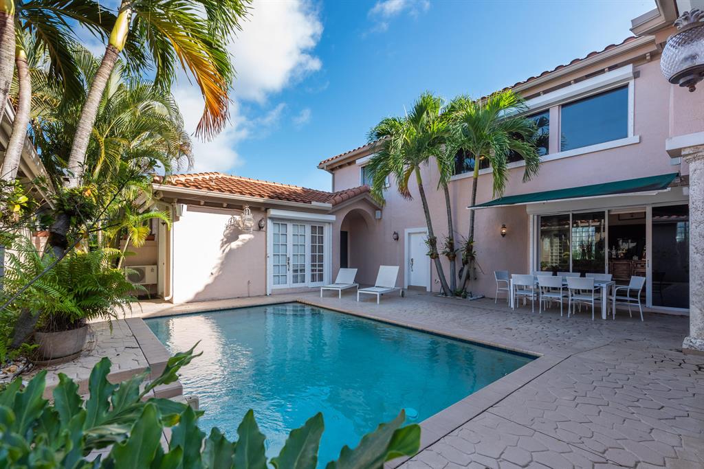 Fantastic Boca Court yard Pool home. In Santa Barbara Community, a 4 Bedrooms, 3-1/2 Baths, Marble floors and Stairs, granite countered island kitchen, spacious master bedroom and guest room off the court yard pool. This is a true court yard pool home. Close to clubhouse, heated pool, tennis courts exercise facility and more. Close to Boca Town Center Mall, restaurants, universities and great schools.