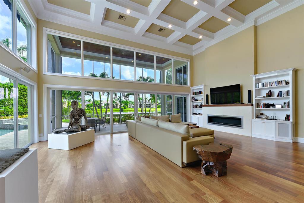 This exceptionally renovated one story lake front home offers sensational views from every major room in the house. A tropically landscaped circular driveway leads to a gated courtyard entry, the main home, a two and one half car garage and separate office or guesthouse with an en suite bath and kitchenette. Expansive openness and tasteful decor is evident from the entry foyer, with soaring two story ceilings, floor to ceiling glass, extraordinary rich Brazilian hardwood floors, custom coffered ceilings and large expansive impact glass windows. Main house has a full master bedroom suite, and two additional bedrooms. An open pool with spa, a marble paver patio with open BBQ, and a screen enclosed two story covered patio all overlook serene lake vistas. See More..