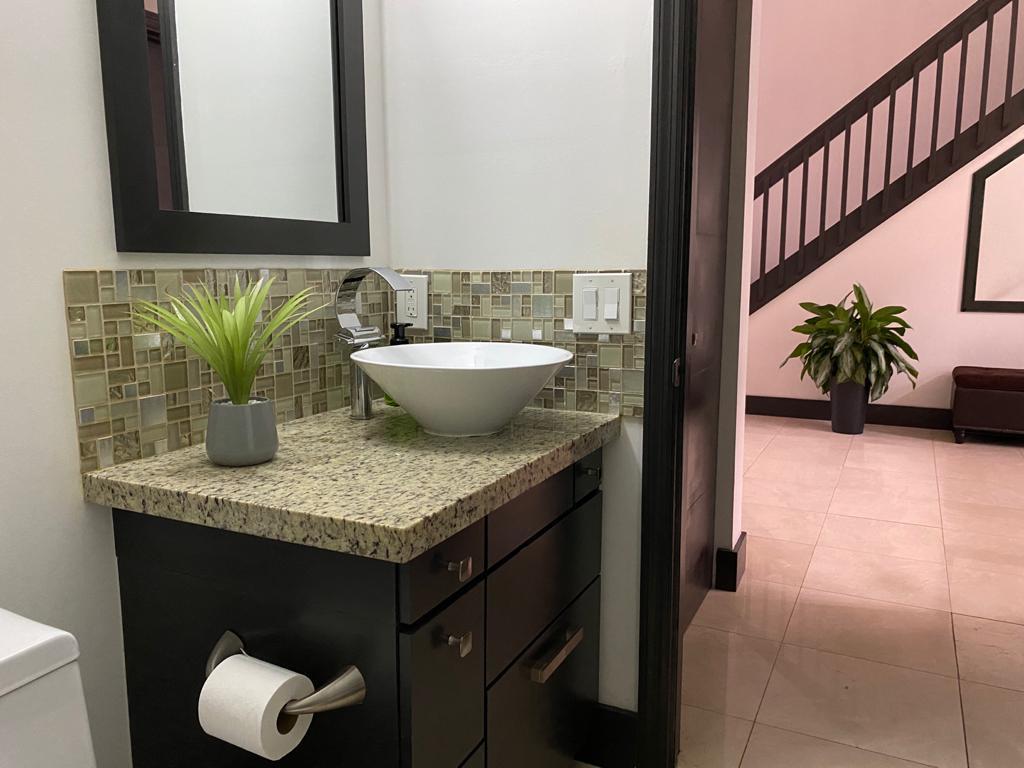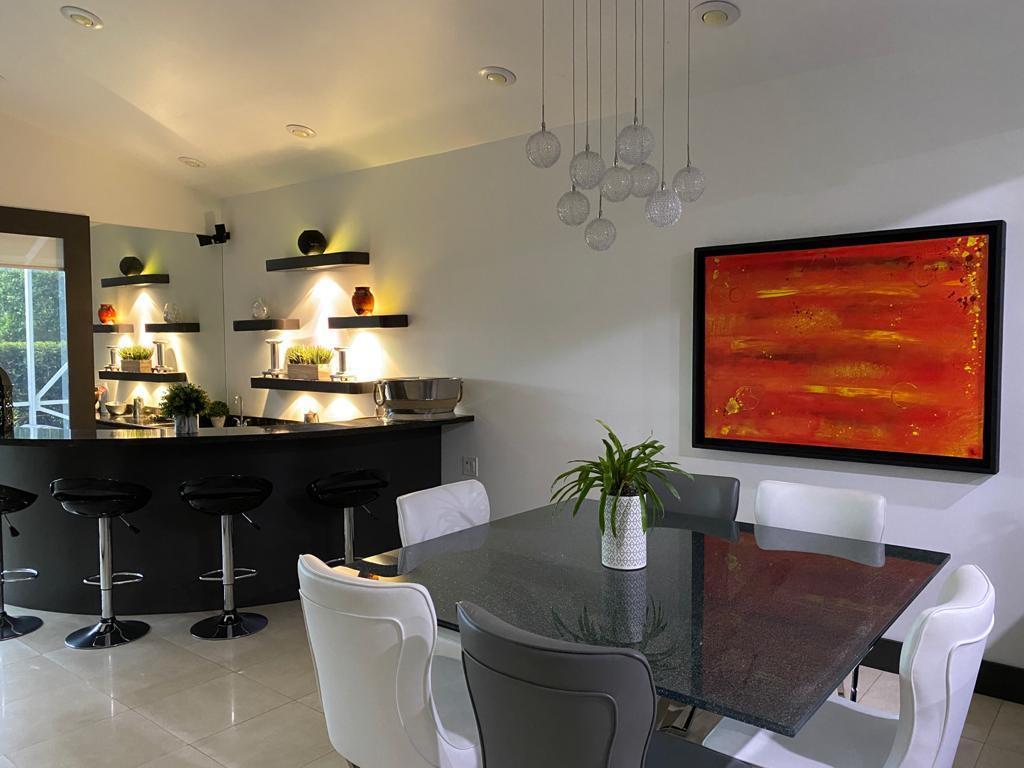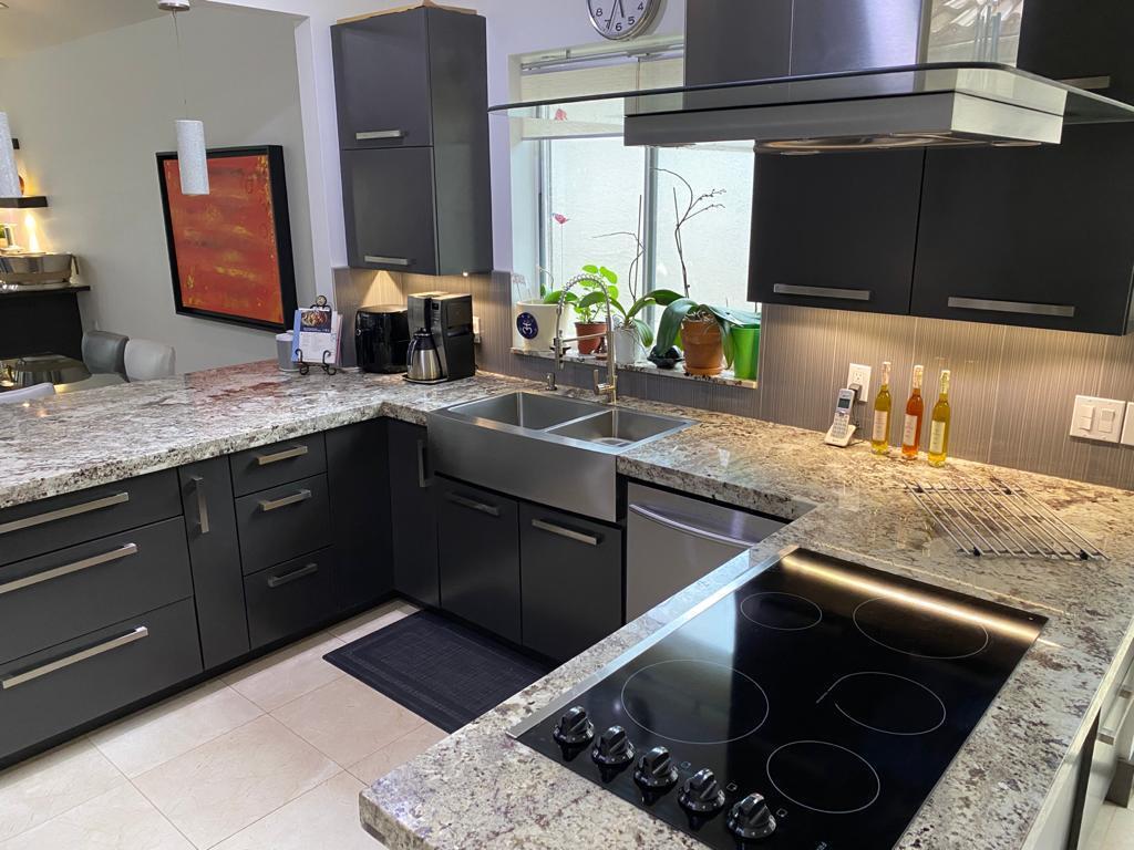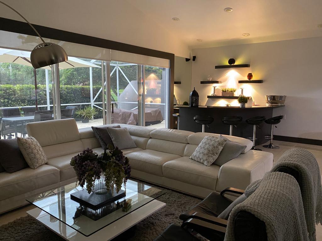Very desirable home in BOCA POINTE. Totally renovated. Contemporary finishes. Modern kitchen with stainless steel appliances, custom cabinets and granite counters. Wet bar. Surround system, Beautiful golf view. Master bedroom downstairs. Bedroom/study downstairs plus bathroom. Two bedrooms upstairs with J&J bathroom. Custom closets and doors. New garage door (remote/cellphone operated). Marble and laminated flooring throughout. Electric roll-down shutters. Brand new exterior paint 06/2020 Country club membership available but not mandatory. THIS IS A MUST SEE! BRING THE OFFERS!!