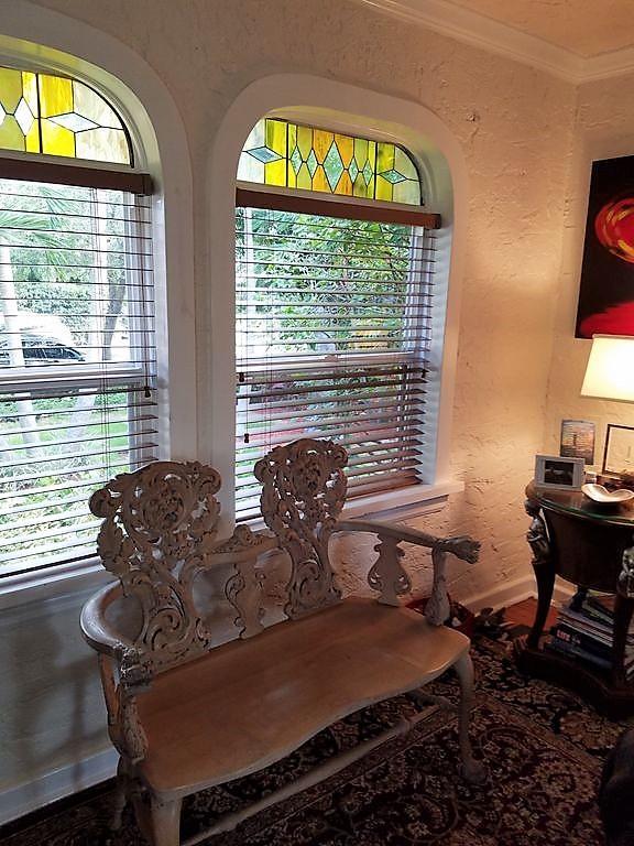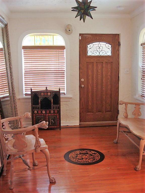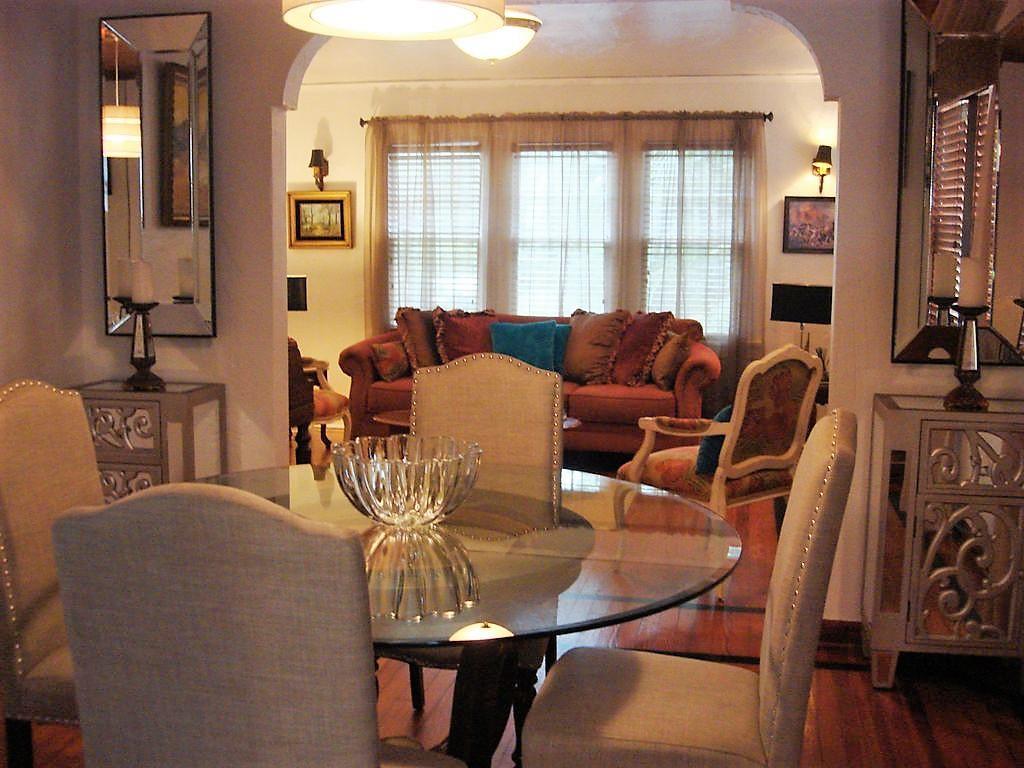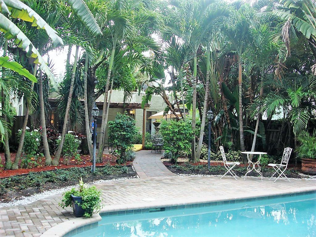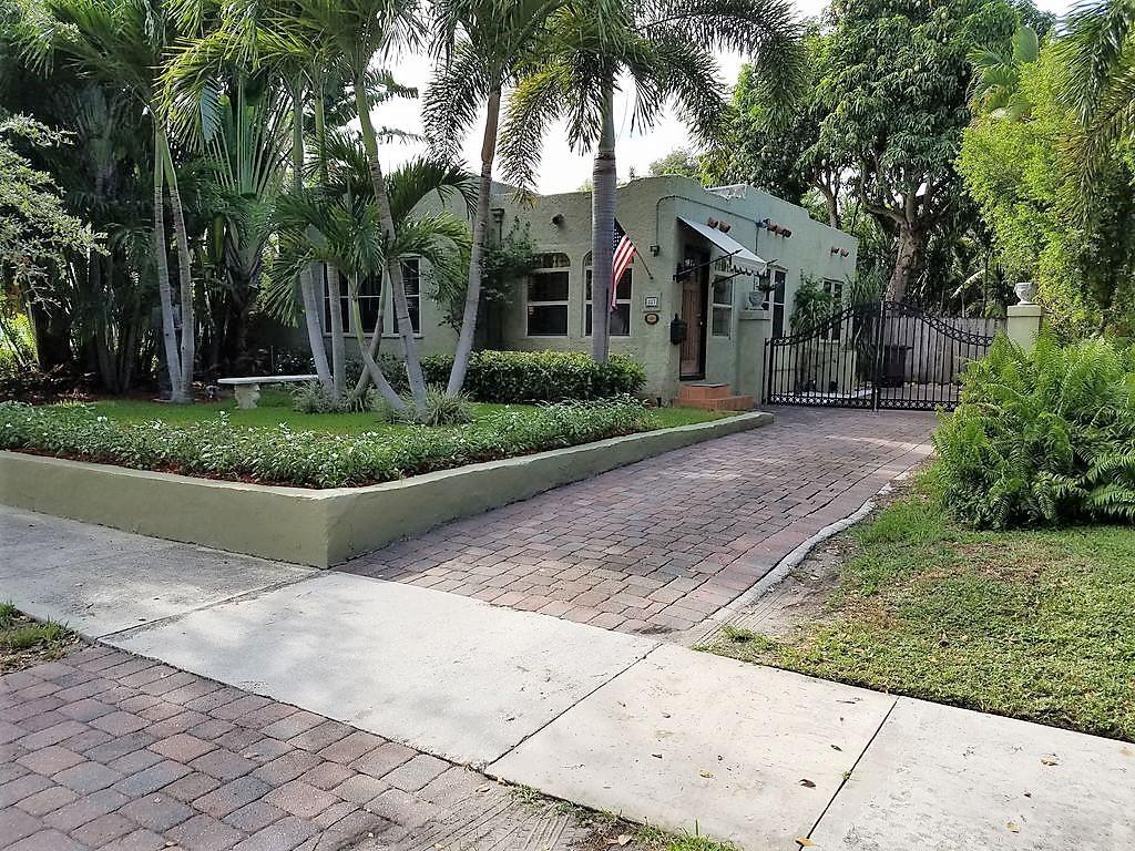 Historically landmarked Spanish Mission style bungalow 1/1 can be converted back into a 2/1. Property features include original Dade County pine floors, a fireplace, stucco walls, a formal arched entry dining room and a kitchen that opens to the large backyard with a private pool surrounded by tropical landscaped gardens.
