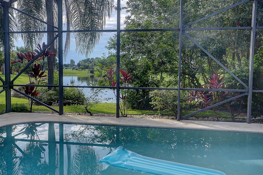 This home has been completely renovated, custom kitchen, with all new appliances, marble baths, high end customized closet systems in both bedroom. Impact windows all around the property and a lake view that in spectacular. This property is situated on the longest end of the lake and the sunsets are magnificent. In addition to the view and upgrades this property has a beautiful and functional side yard which is perfect for kids and pets. No membership required, pay and play golf. Cable TV with HBO and Showtime, fiber internet included is the low HOA fees. Gated community.