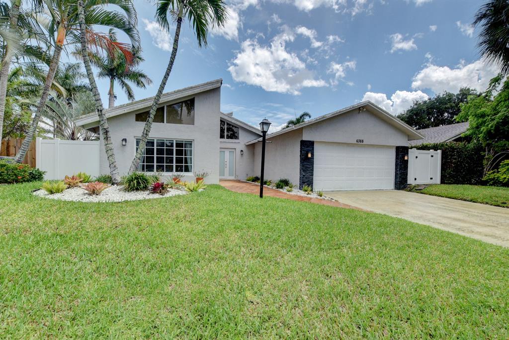 Beautiful 3/2 house centrally located in Boca Raton. This contemporary family home features porcelain tile floors throughout with wood looking porcelain floors in the bedrooms, a fully remodelled high-end porcelain [main] bathroom, marble design en-suite bathroom, European style laminate doors and Krion countertops (solid surface) with a glass backsplash in the kitchen, The house also offers a new tankless water heater, fresh paint job, impact windows &doors(with the exception of a few windows)Carrier brand AC unit with UV lights installed in 2018, a new pool with salt chlorinated system, stainless steel appliances, a heavy duty washer and dryer, custom-made blinds, recently built white fence in the backyard, and new stucco with customized stones in the front.Great school district. LOW HOA
