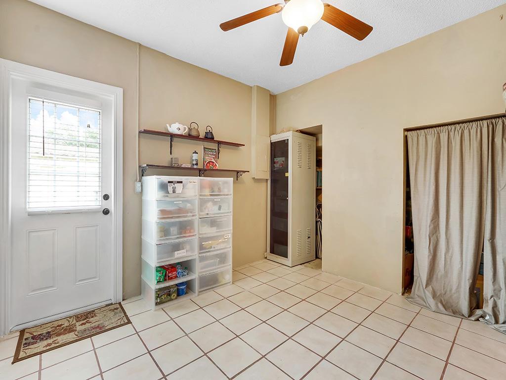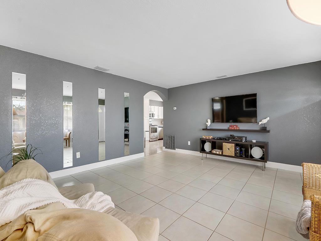This is a rare find! This 3 bedrooms 2 bathroom home is in an all A-rated school zone. You will love the updated white kitchen cabinets with stainless steel appliances. There is tile in the main house and laminate in the bedrooms for easy care. Part of the garage has been converted to living space and is perfect for a bonus room or an office. Enjoy the oversized backyard that is perfect for barbecues with plenty of room to entertain under the covered 20 x 10 patio. There is also room to add a pool. Storm preparation is easy with accordion shutters for all of the windows. The hot water heater is brand new and the home has been freshly painted inside. The neighborhood has a low hoa fee too! This home has been well-loved and is ready for its new owner.