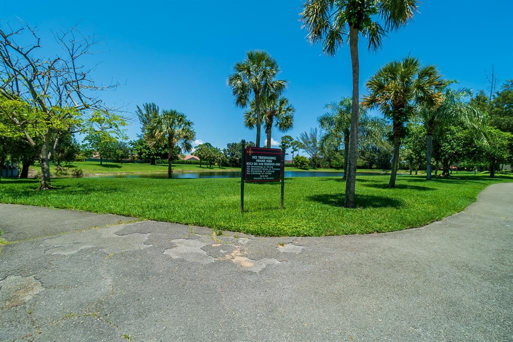 Wow! What a beauty ! This meticulously kept 3 bedroom 2 bath WATERFRONT home is like a ray of sunshine when you enter, this home is Light bright and happy....in the best central BOCA location .....White modern kitchen with granite and stainless appliances renovated 3 years ago, tile thruout entire home ,main living areas and in all bedrooms, guest bath renovated 3 years ago, master bedroom has amazing closet space (california closet style built ins ) but nothing beats the gorgeous yard fully fenced (Complete with mango tree) backing up to a breathtaking park and lake , bridge is right behind house !! Your own private paradise room for a pool stamped concrete patios , partial accordion shutters and panels And lowest home owners fee annual is $145.00 no rental restrictions... A must see!