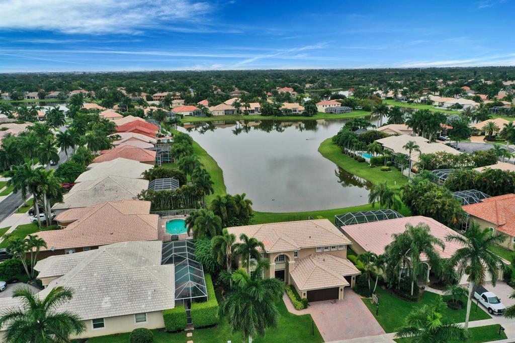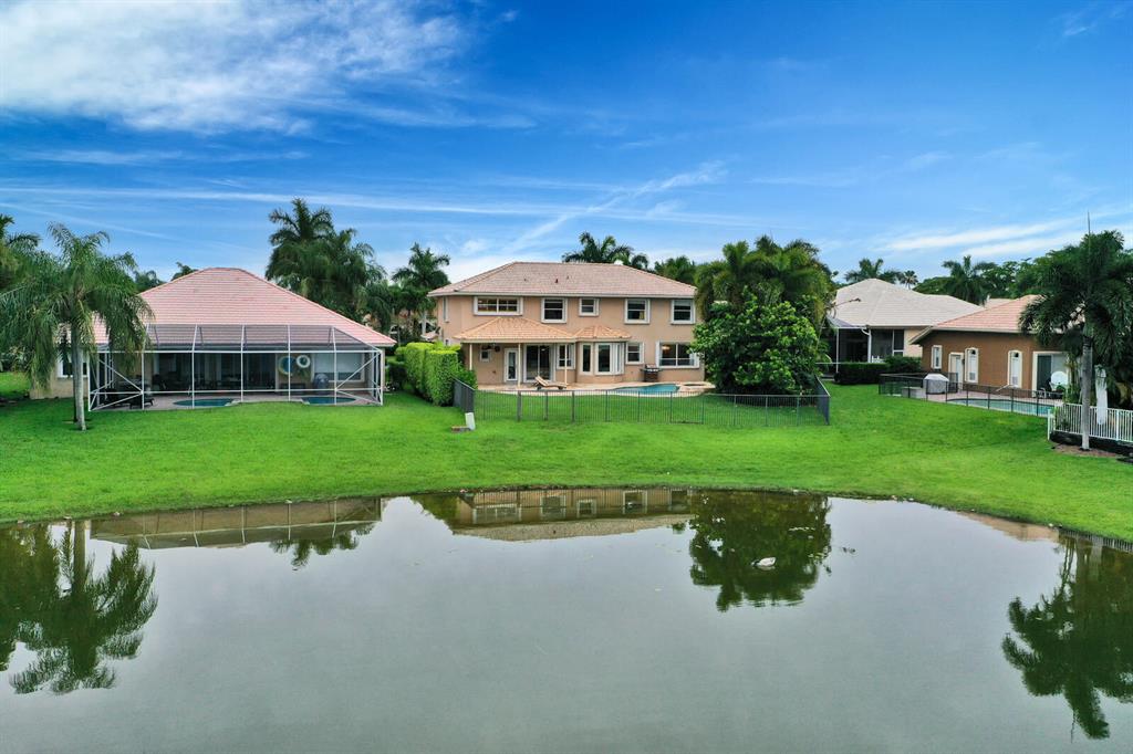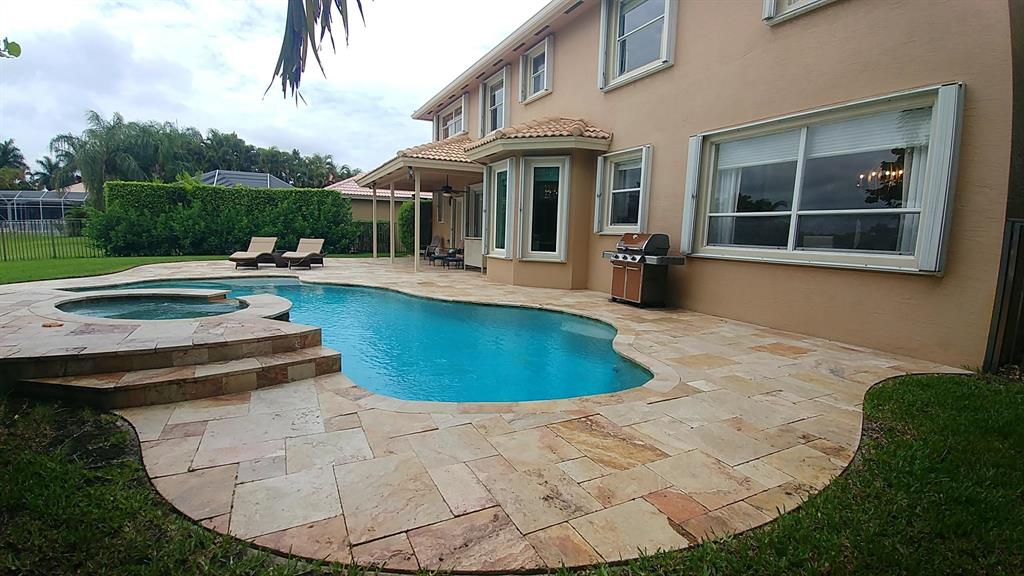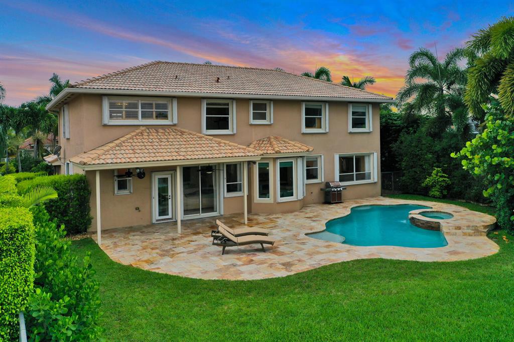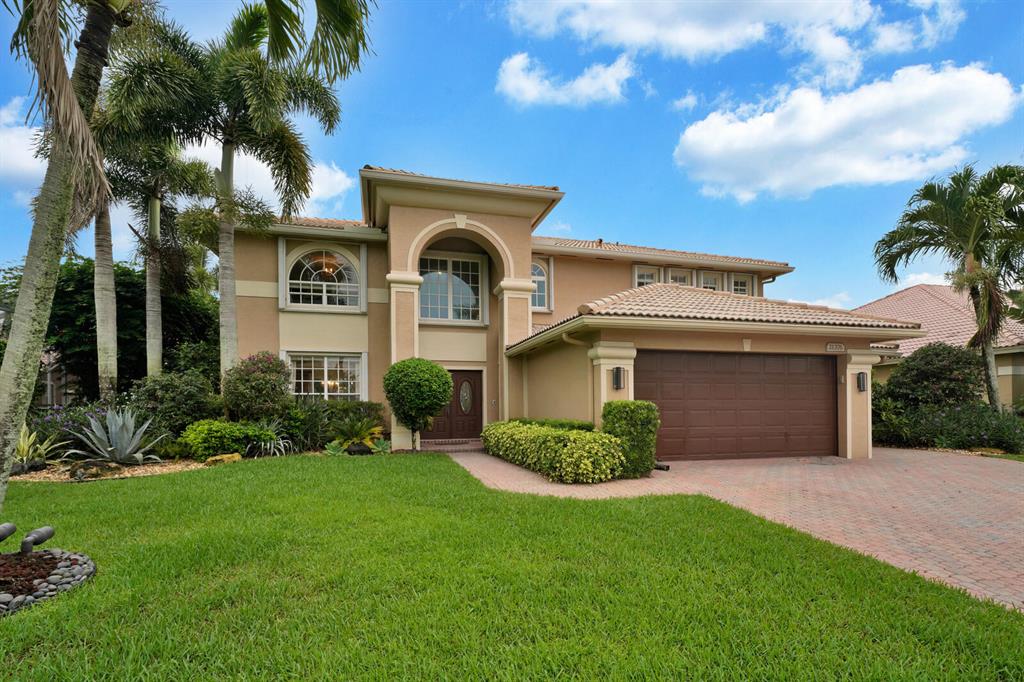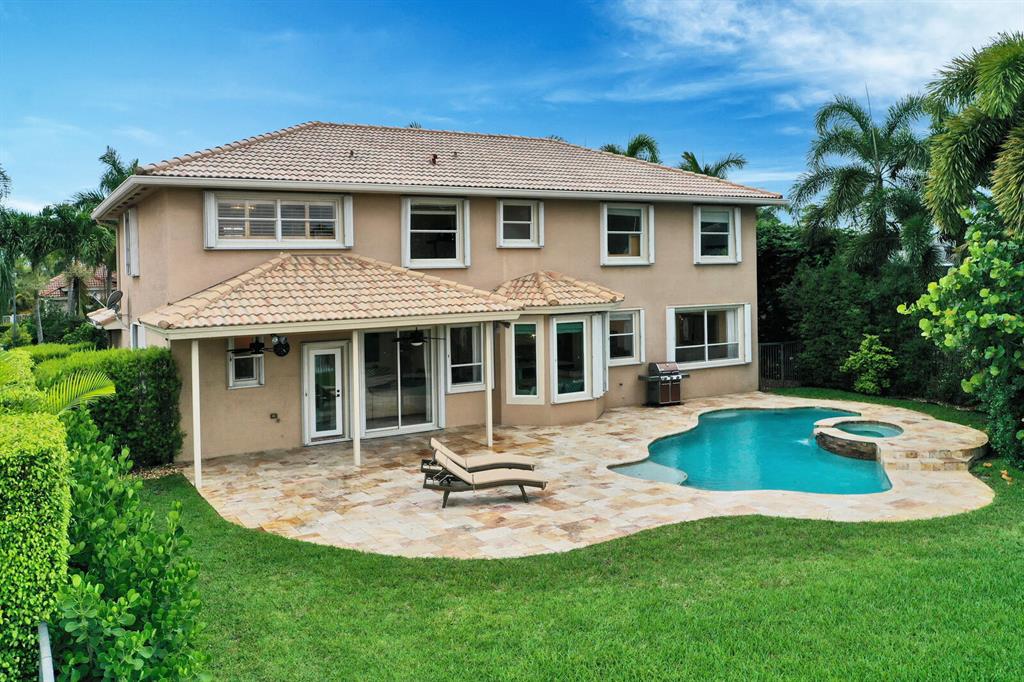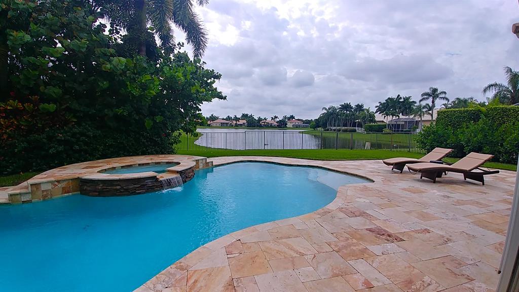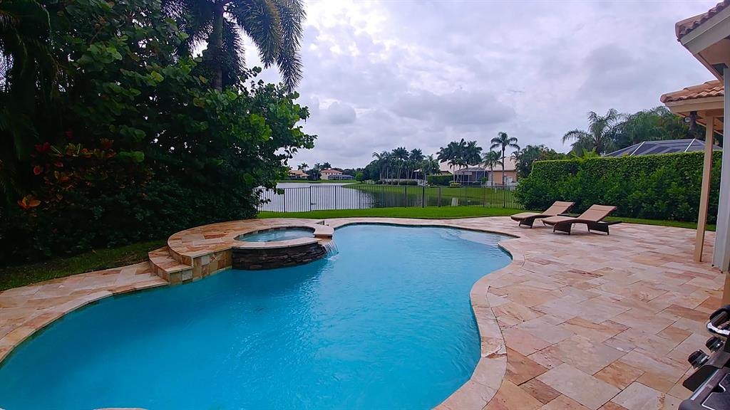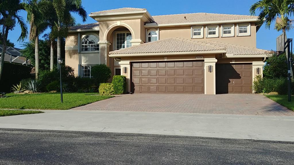 LOCATION, LOCATION, LOCATION! Rare and immaculate Aruba model within Mystic Bay, Boca Falls! This beautiful home boast 5 bedrooms, three bathrooms, loft, three car garage with a travertine marble deck, heated free-form pool and spa with salt chlorination and automation along with an expansive lake view on one of the best lots in Boca Falls! The interior has been tastefully remodeled with porcelain floors throughout the ground floor with wood flooring on the staircase and entire second floor including bedrooms. The kitchen has upgraded wood cabinetry, quartz counters with marble back-splash, oversized center island and seating within the bay window area. Remodeled bathrooms (ground floor bath has wood cabinetry, granite counter and frameless glass shower door;