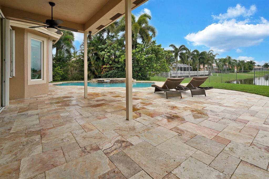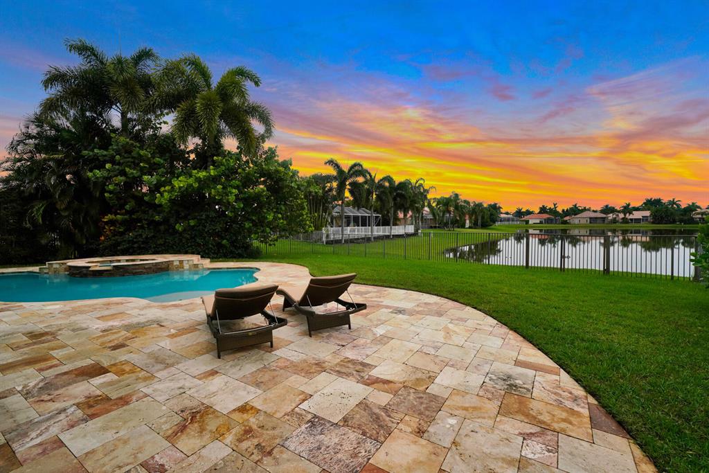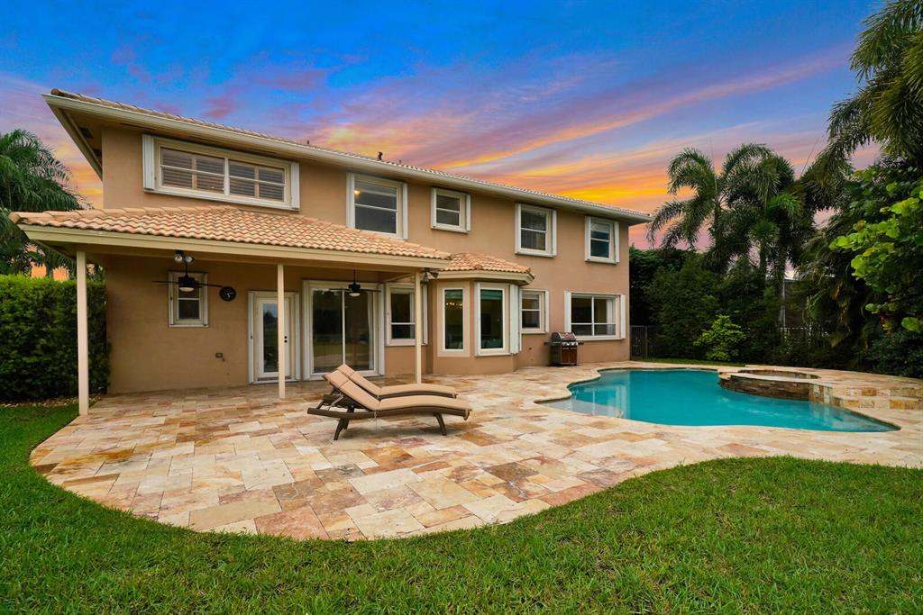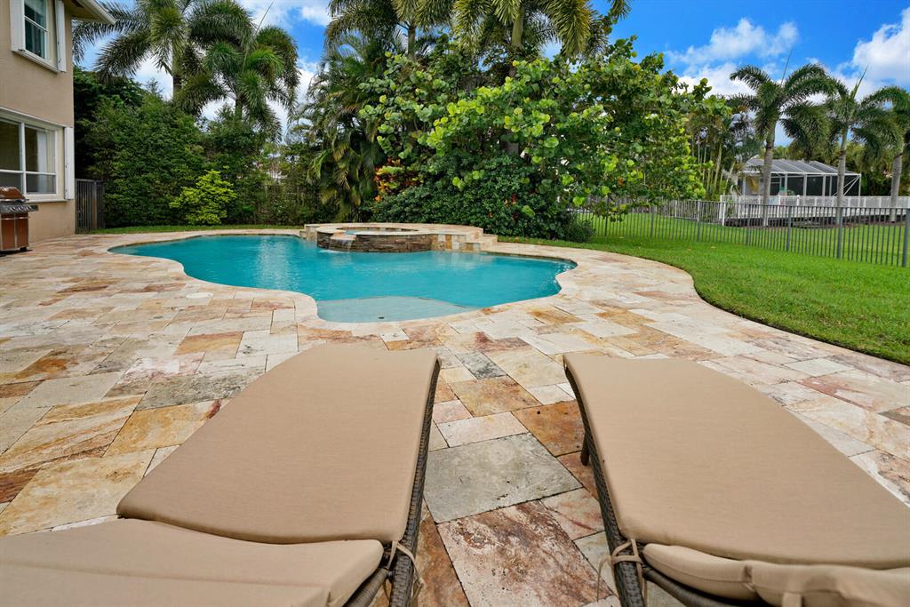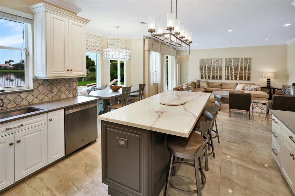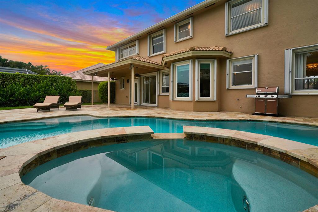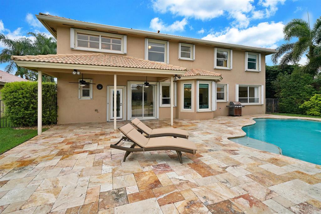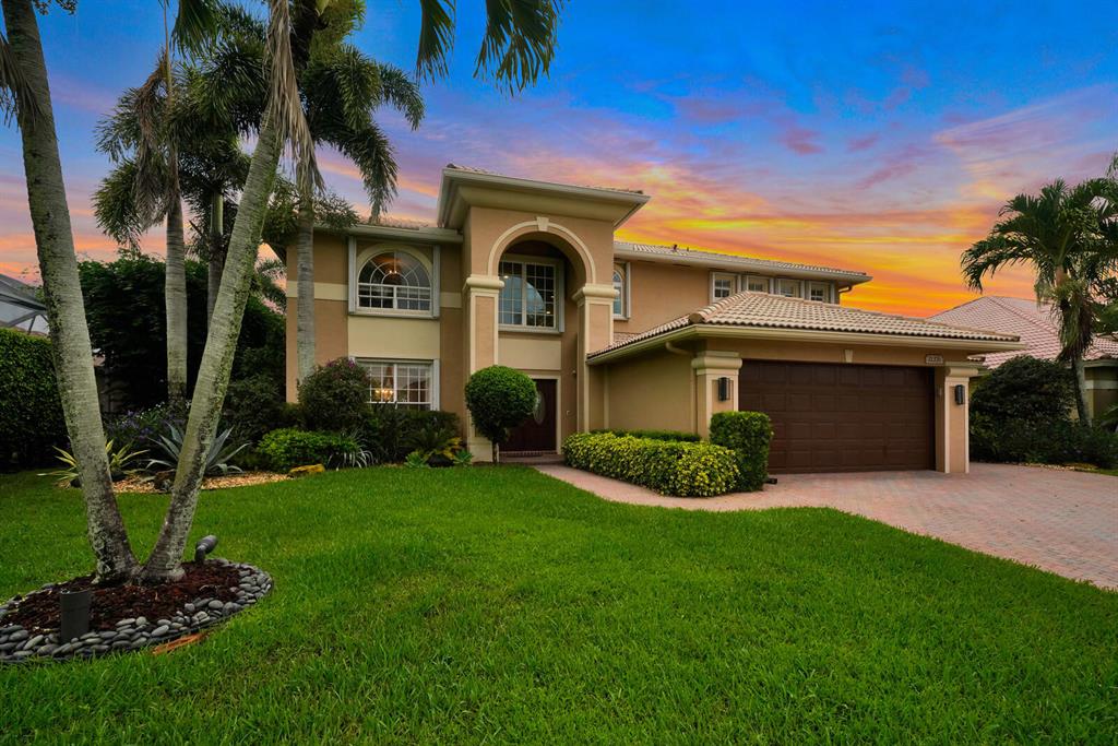 LOCATION, LOCATION, LOCATION! Rare and immaculate Aruba model within Mystic Bay, Boca Falls! This beautiful home boast 5 bedrooms, three bathrooms, loft, three car garage with a travertine marble deck, heated free-form pool and spa with salt chlorination and automation along with an expansive lake view on one of the best lots in Boca Falls! The interior has been tastefully remodeled with porcelain floors throughout the ground floor with wood flooring on the staircase and entire second floor including bedrooms. The kitchen has upgraded wood cabinetry, quartz counters with marble back-splash, oversized center island and seating within the bay window area. Remodeled bathrooms (ground floor bath has wood cabinetry, granite counter and frameless glass shower door;