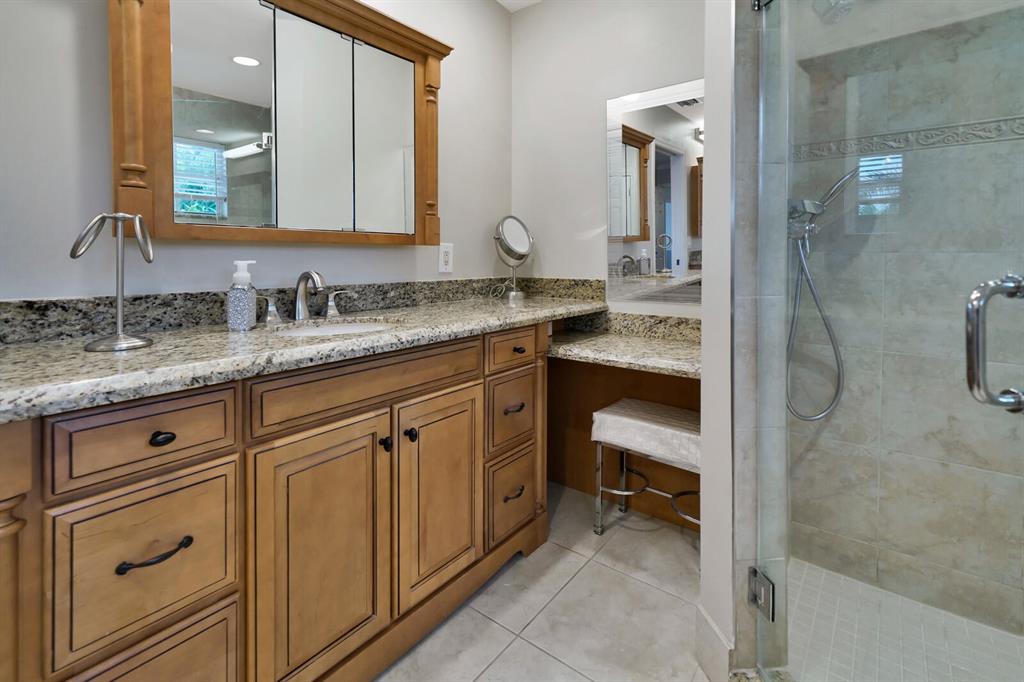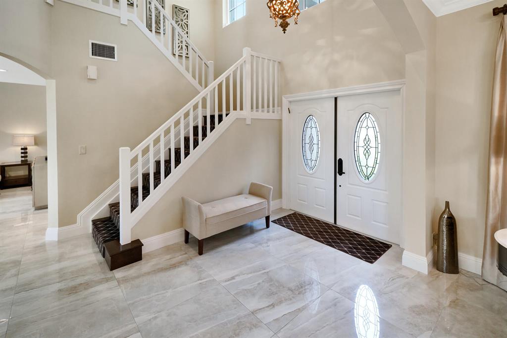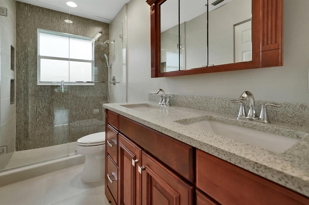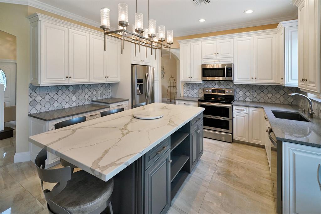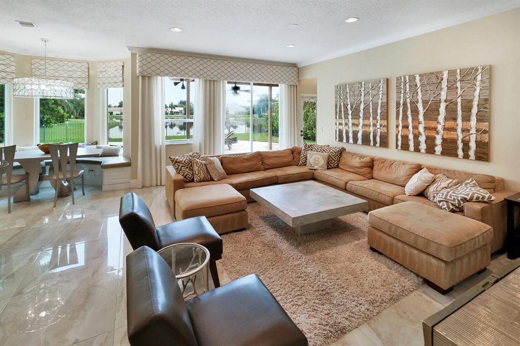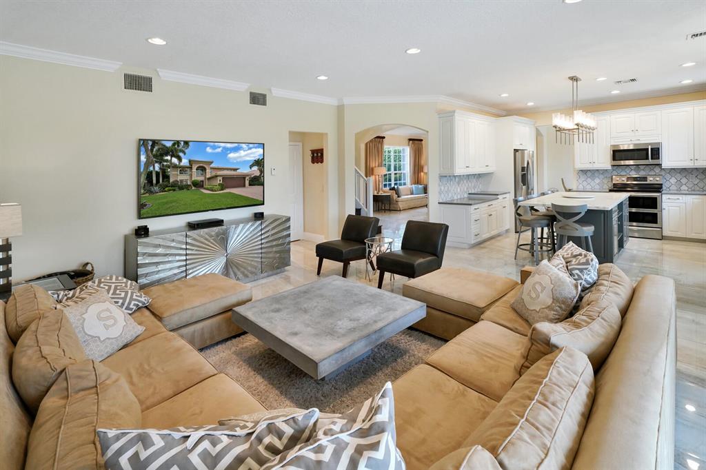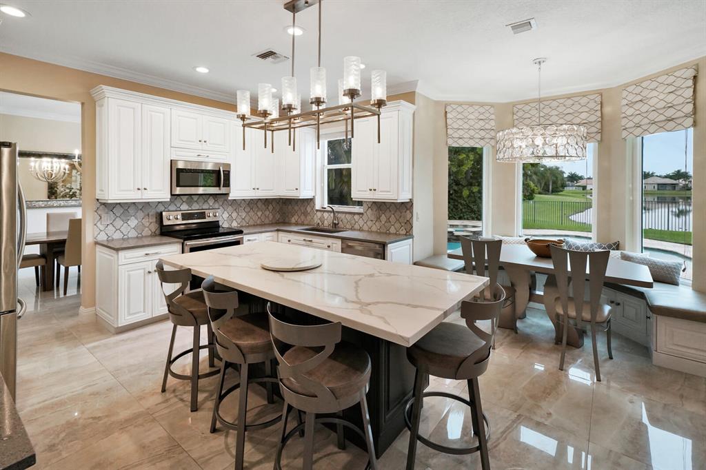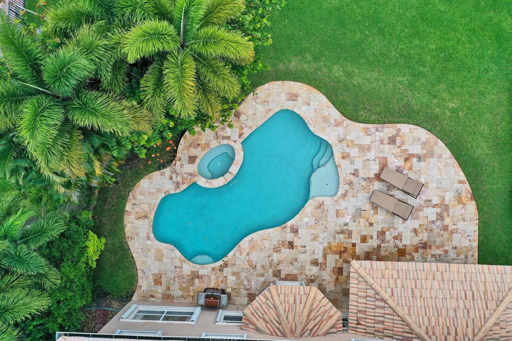 LOCATION, LOCATION, LOCATION! Rare and immaculate Aruba model within Mystic Bay, Boca Falls! This beautiful home boast 5 bedrooms, three bathrooms, loft, three car garage with a travertine marble deck, heated free-form pool and spa with salt chlorination and automation along with an expansive lake view on one of the best lots in Boca Falls! The interior has been tastefully remodeled with porcelain floors throughout the ground floor with wood flooring on the staircase and entire second floor including bedrooms. The kitchen has upgraded wood cabinetry, quartz counters with marble back-splash, oversized center island and seating within the bay window area. Remodeled bathrooms (ground floor bath has wood cabinetry, granite counter and frameless glass shower door;