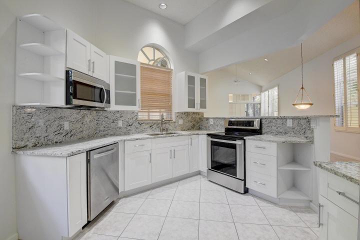 This 3bedroom 2 bath home in the Banyans of Broken Sound is bright and open. The 3rd bedroom is being used as a den with built in book cases and desk. This home features a newly renovated kitchen with granite countertops & stainless steel appliances and newly renovated bathrooms & floors in the bedrooms. You will find neutral colors throughout high vaulted ceilings and a screened in porch in your private back yard.*MANDATORY BROKEN SOUND COUNTRY CLUB MEMBERSHIP*