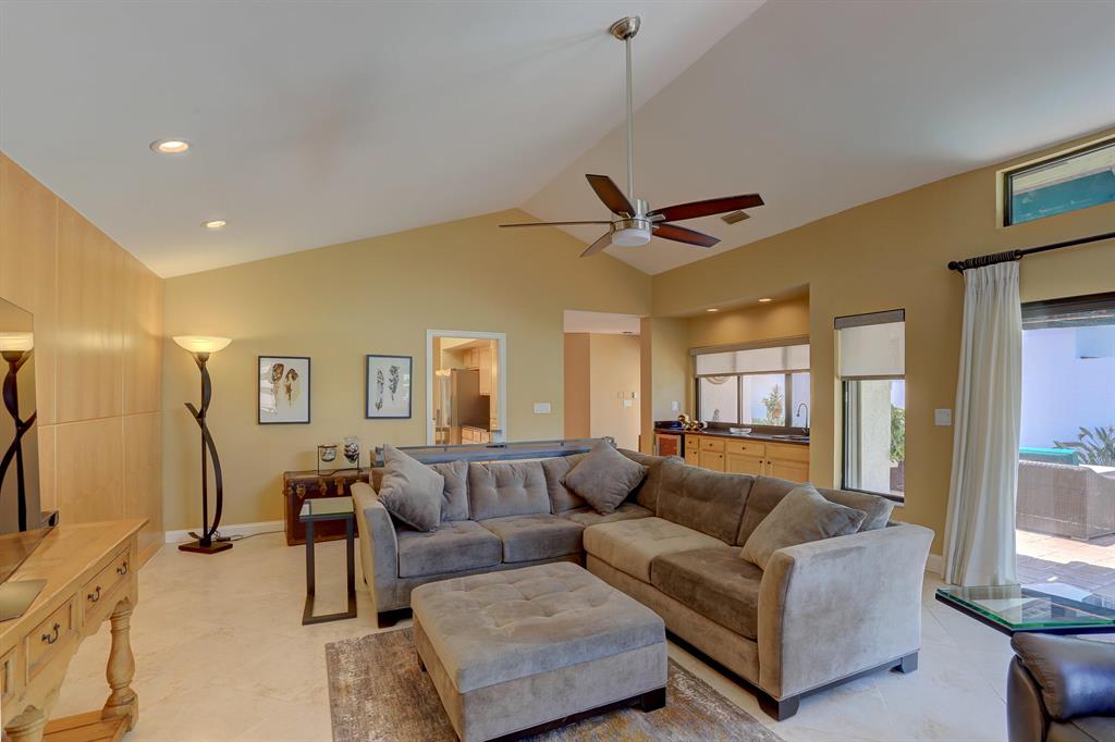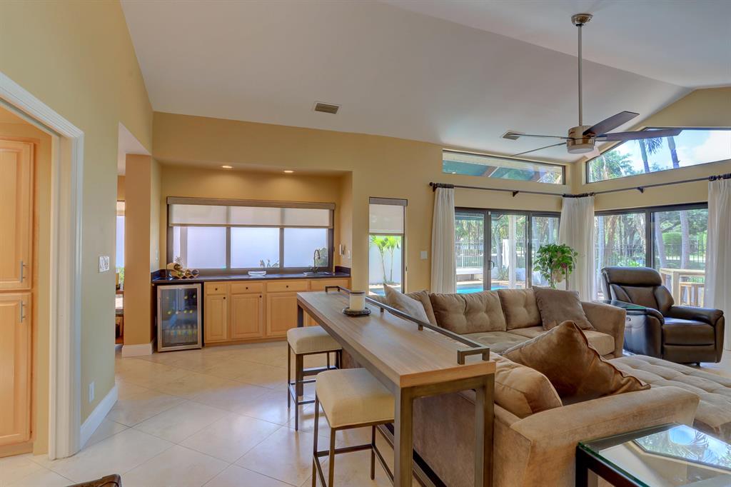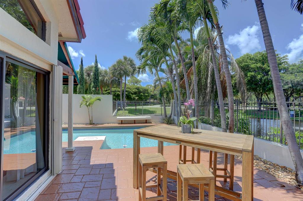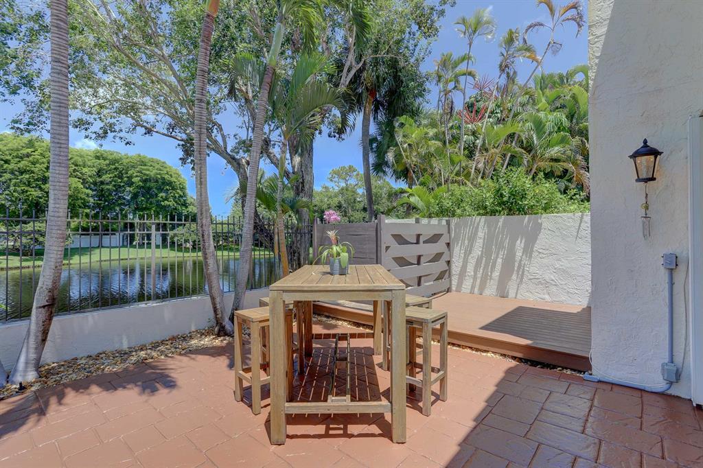 Welcome to this beautifully maintained and upgraded 2 Bed 2 Bath lake front home in the manned gated community of Town Place. Situated on one of the best lots in the community, the private, newly painted pool deck looks out on the lake and fountain. The perfect place to entertain your friends, enjoy your morning coffee and live the Florida lifestyle! There is an additional raised deck - ideal for the barbecue - with a separate seating area. Deck is constructed of composite material deck boards for durability and low maintenance. Home features an entry foyer that leads to the very spacious Great Room with vaulted ceilings and magnificent views of the Lake and pool through 2 sets of sliders. A working fireplace and wet bar with wine cooler make this another great space
