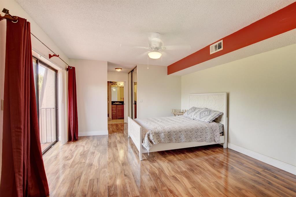 CHECK OUT THIS GEM AT THE LAKES AT BOCA RIO! Unit was updated in 2018 - ceiling fans, courtyard, kitchen and baths, tankless hot water heater, alarm system, refinished stairs and banister, air conditioner, toilets, etc. Fence replaced in 2020 and is currently being painted by the association. Lots of storage, washer and dryer in unit (downstairs), and wonderful privacy. Primary bedroom and bathroom upstairs with a balcony connecting to the second bedroom. One bedroom on the first floor with private entrance to enclosed patio. Walk in Closets! The community boasts a large walking/jogging/biking/exercise path surrounding a beautiful lake with ducks and benches to sit; as well as a pool, clubhouse, tennis, and more! Don't miss the opportunity to show your client this hidden gem today!
