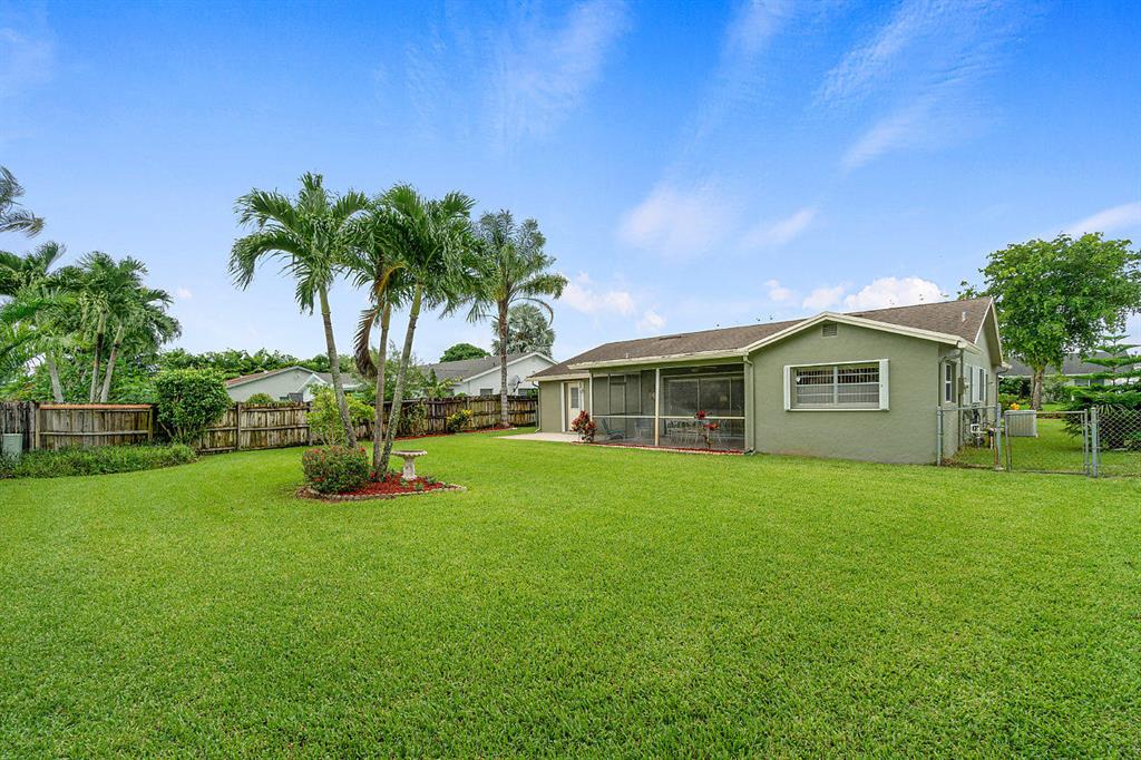 Lovely home on huge cul-de-sac lot. Walking distance to Boca Dunes Golf & Country Club (no membership required). Eat-in kitchen. Large living room looking out to the screened/covered patio and yard. 2 car garage. Two zone (split) air conditioning. Large walk in closet and cabana bath in the master suite. Security system. Accordion hurricane shutters(very easy to close up the house). Top rated Boca Raton schools. Do not hesitate on this one!