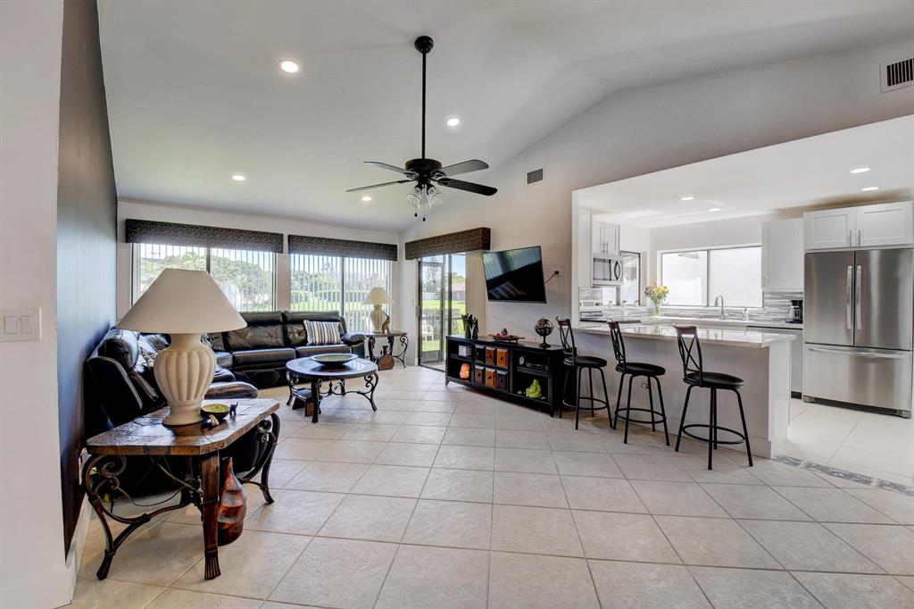 This impressive home will definitely impress! Stunning open kitchen renovation completed in 2019. Abundance of beauitful white cabinets , granite countertops and backsplash, Additional ''coffee bar'' area. Stainless steel appliances all replaced in 2019. Beautiful lake and fountain view from the double kitchen window, living room and 2 of the bedrooms. Screened and covered patio. Bermuda shutters for front windows. Outside painted in 2020. Roof replaced in 2019. A/C replaced in 2018. No carpets. Great nearby shopping & dining. All schools are A rated.