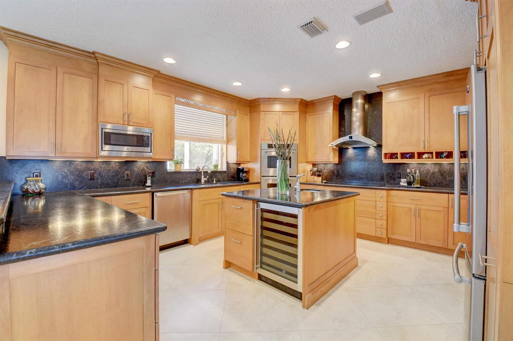 Totally updated Ocean Grande model. Enter this fabulous home through etched double front doors.Expanded kitchen features granite countertops and backsplash and a large island with sink, disposal, wine refrigeraor and electric. Double Thermador convection wall ovens,Thermador cooktop with stainless steel exhaust hood and Bosch dishwaher. Main floor has 24x24 tile on diagonal, 5 1/2 inch baseboards & 8in. crown moldings. Total reno on 2nd fl. in 2020., flooring, bathrooms and ceiling fans. Master has siitting room with private balcony & 2 walk in closets, Central vac,, NO POPCORN, NO CARPETS, Accordion shutters,newer roof. Oversized pool & spa and huge rescreened cage, up to new code. Enjoy Boca Isles resort style living. All schools A rated, Best shopping and restaurants nearby. Must see