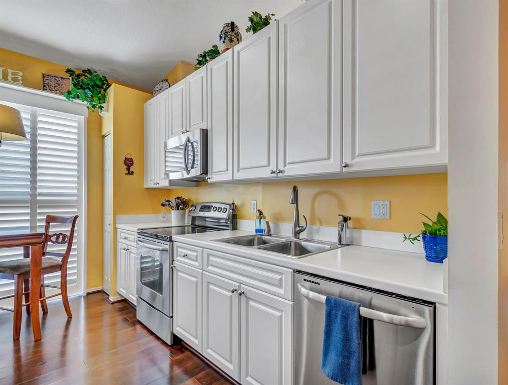 Beautiful 2/2 plus den designer home with 2 car garage and a beautiful green space out front, located in Andros Isle. This home has beautiful upgraded laminate flooring throughout with the exception of carpet in the bedrooms. The large kitchen has updated stainless steal appliance package in the eat-in kitchen. This home offers beautiful plantation shutters throughout, and shows like a model.