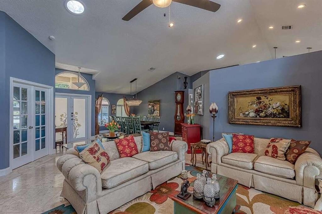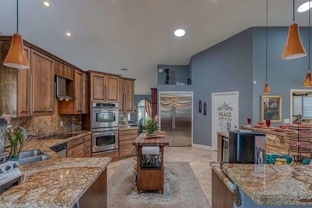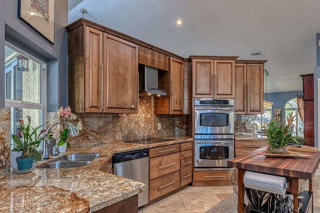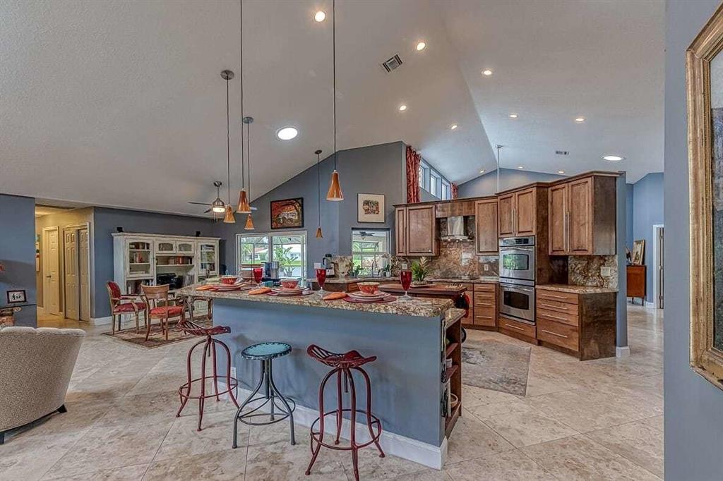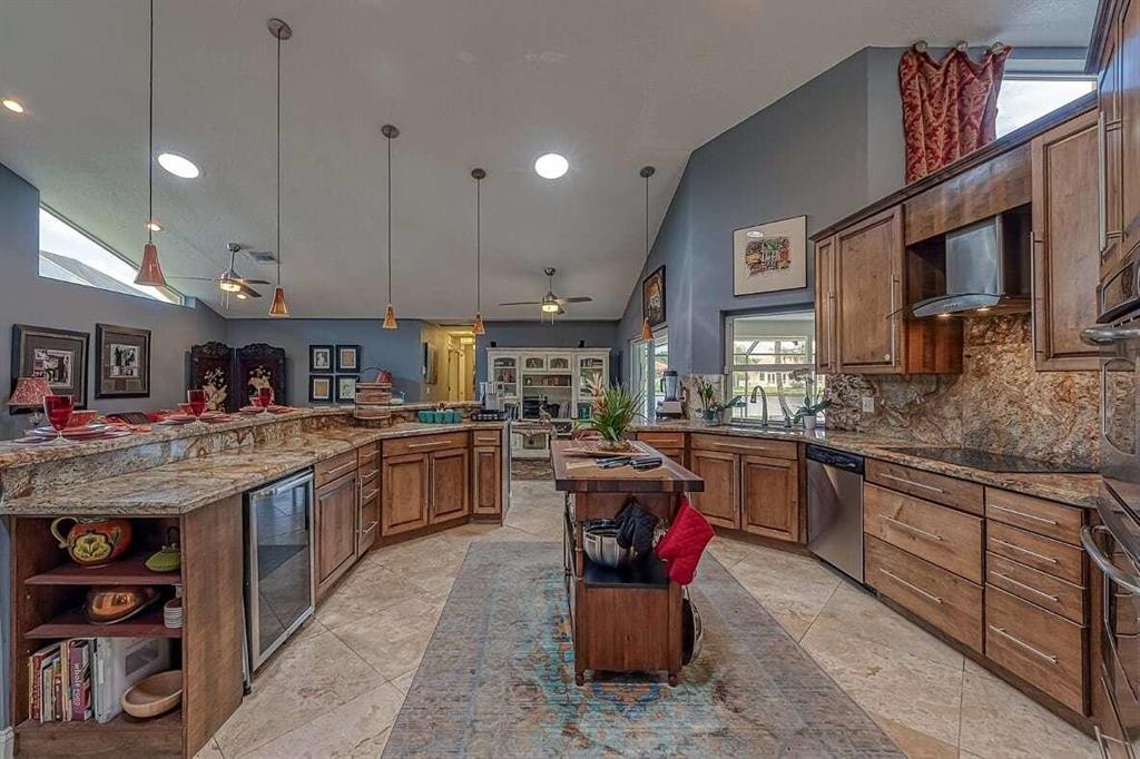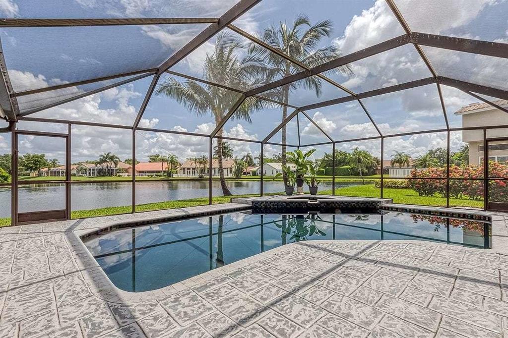 Call this fabulously renovated home with sweeping lakefront views yours! You'll feel amazing in this stunning, modern open floor plan with tons of natural sunlight. Imagine entertaining in a gourmet chef's kitchen. S/S appliances, soft close doors, wine cooler, double wall ovens & ample storage make this a dream. Wake up to sprawling lakeviews from your bed. Opulent 24''x24'' travertine. Picture lounging in spacious covered outdoor living + diningrooms. Heated spa + pool w/dark green diamondbrite give an infinity feel so your view goes on and on and on. Hurricane impact windows and doors save about $2,000/year in insurance and makes hurricane preparation a snap - mere minutes. 2016 HVAC system. 2018 Hot water heater. Solar roof panels saves ~$125/mo in electricity. Don't miss this one!