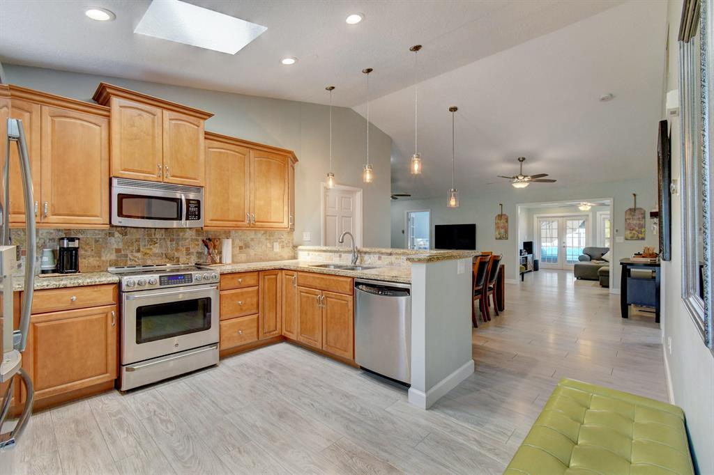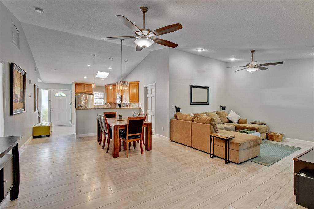 Stunning 4 bedrooms, 2 bathrooms with Den, Single Family Home in a desirable location just mins from I95 & Turnpike. 1601 SF under air. Low HOA fees includes basic cable. Lots of recreational amenities within the community such as a large pool, game room, a gym, a library, 2 tennis/racquetball courts, and a playground. The home includes granite kitchen countertops with tumbled marble backsplash, custom cabinets with automatic soft-close drawers, 2 lazy Susans, GE stainless steel appliances, and convection oven. The kitchen has an illuminating Skylight to let the sunshine in. Recessed lighting with fans in every room. Dual sinks in the master bathroom with custom cabinetry, marble showers, power jets and stone countertops.