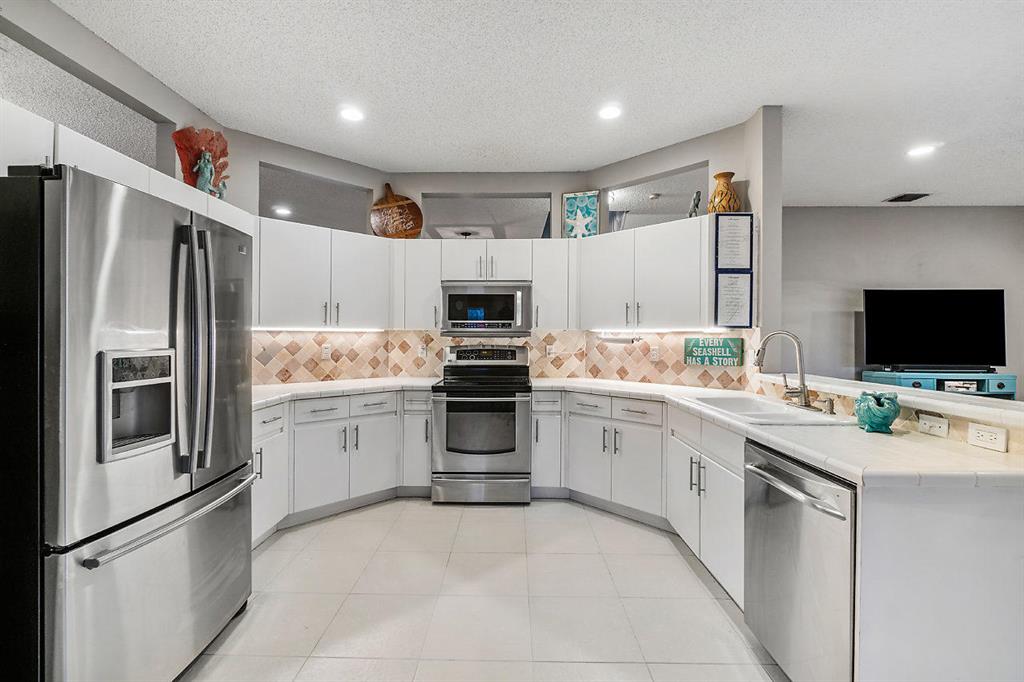 This fabulous home is waiting for you at Symphony Bay in sophisticated Boca Raton. This gated community is a hidden gem not far from the NEW UPTOWN BOCA! This home boasts soaring vaulted ceilings, a light, bright and spacious eat-in kitchen, tile and laminate throughout, formal living and dining areas, an oversized family room and breakfast bar, a huge master bedroom with a walk-in-closet and jacuzzi tub, plus 3 other bedrooms all UPSTAIRS making this home perfect for everyday living and entertaining. Sit outside in your oversized, full length, tiled and screened in covered space while watching the kids make s'mores at the fire pit or practice their golf skills on the putting green.