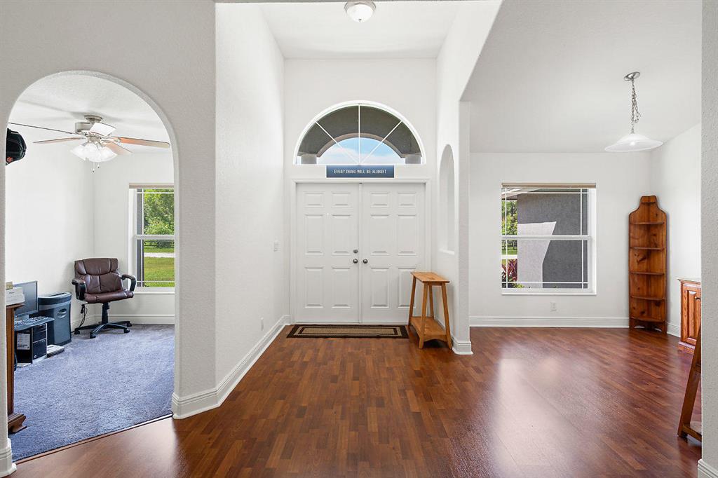 Click on Video Tour Link: Meticulously kept !! Built in 2018 3 BDR Plus Den 2 Bath 2 CGR home on Corner Lot with a canal on the South side and West Side. So beautifully maintained and organized that truly all you need is to bring your clothes and furniture. You'll have to open the pantry door to see what I mean :) Upon entering you are in a welcoming foyer overlooking the formal living room to the backyard. The kitchen is set up for entertaining with stainless steel appliances, granite countertops, tall kitchen cabinets plus a pantry and a large bar area overlooking the Florida room. Large master bedroom and master bath with lots of light. Double pane impact windows, no penny was spared there.