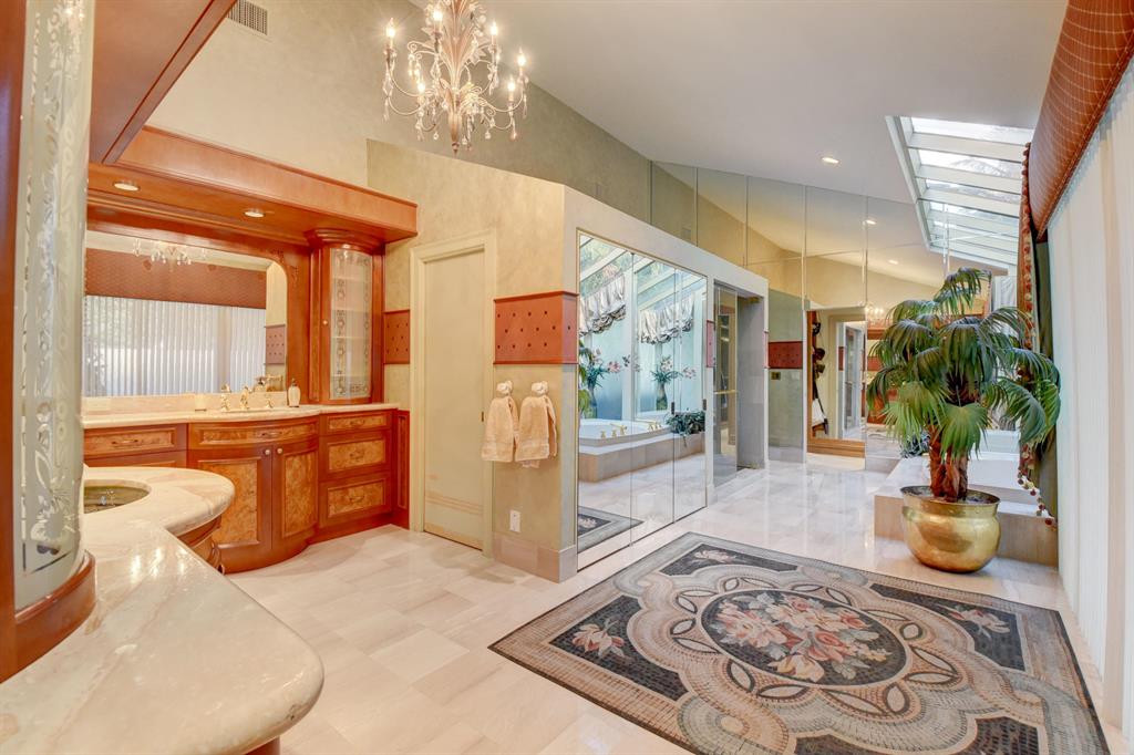 CUSTOM, ONE OF A KIND AND SIMPLY PERFECT. THIS AMAZING FLOOR PLAN WITH A 3 WAY SPLIT, IS A PERFECT HOME FOR GUESTS AND ENTERTAINING. THE FIRST FLOOR BOASTS AN ENORMOUS MASTER SUITE WITH SITTING AREA, LARGE MASTER BATH AND FITTED WALK-IN CLOSET WITH A GRAND AND GORGEOUS BUILT-IN OFFICE. ON THE OTHER SIDE OF THE FIRST FLOOR, YOU WILL FIND 2 CLUSTERS, EACH WITH 2 BEDROOMS AND THEIR OWN GRAND BATHROOMS. CHEF'S KITCHEN WITH BUILT-IN SUB ZERO AND CUSTOM APPLIANCES AND CABINETS. THE THEATER, FIREPLACE, WINE CLOSET AND WET BAR IN THE LIVING ROOM ARE ADDED TOUCHES TO GREAT ENTERTAINING. THE UPSTAIRS IS HOME TO THE LOFT WHERE HANGING OUT, PLAYING CARDS OR POOL IS IDEAL. INCREDIBLE FLOOR PLAN... SEE SUPPLEMENT FOR MORE UPGRADES...