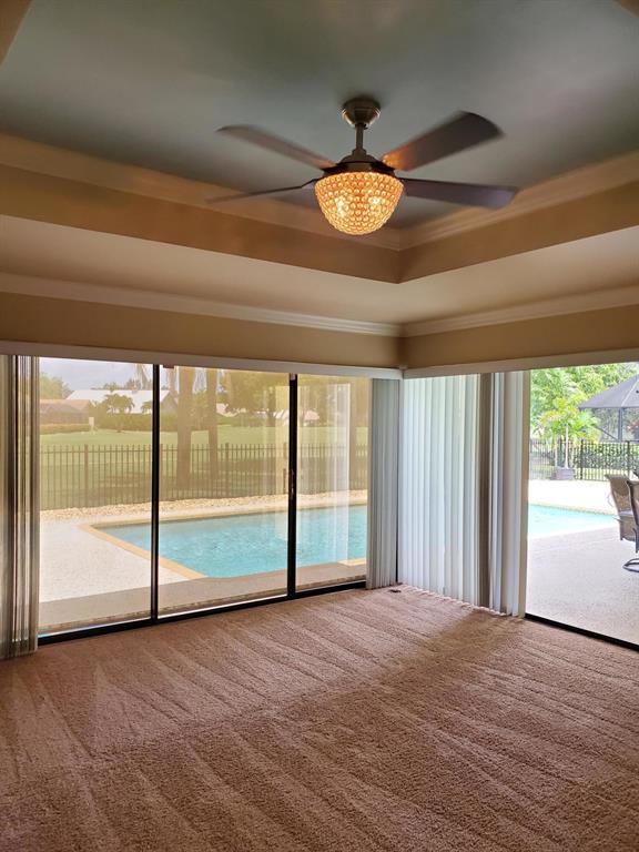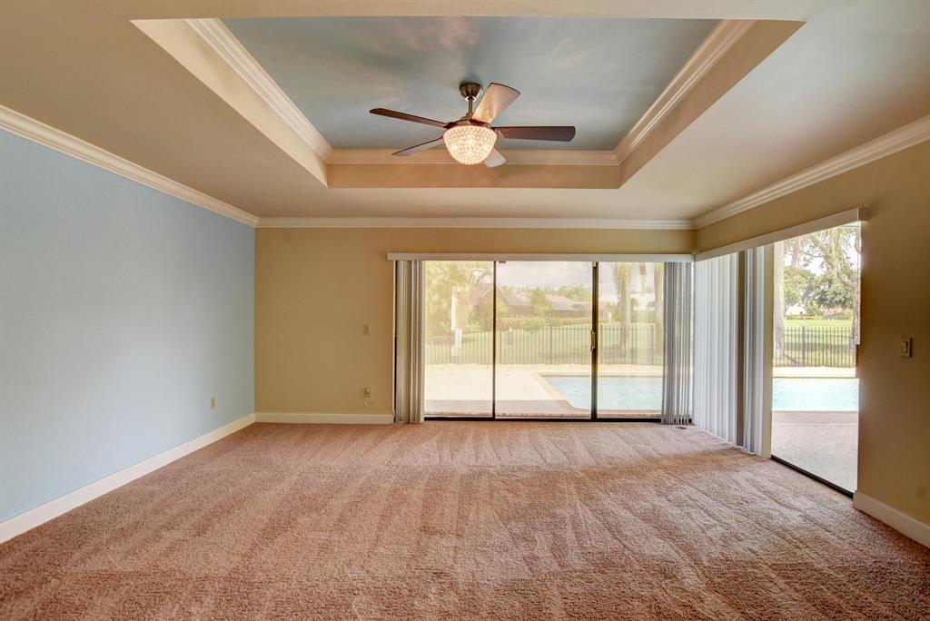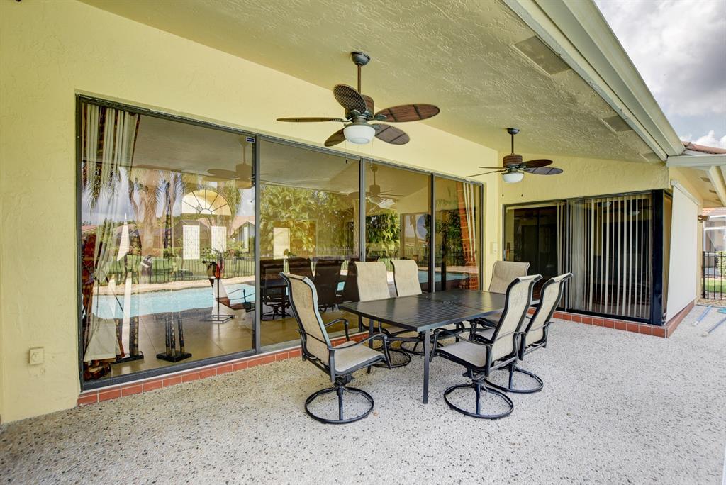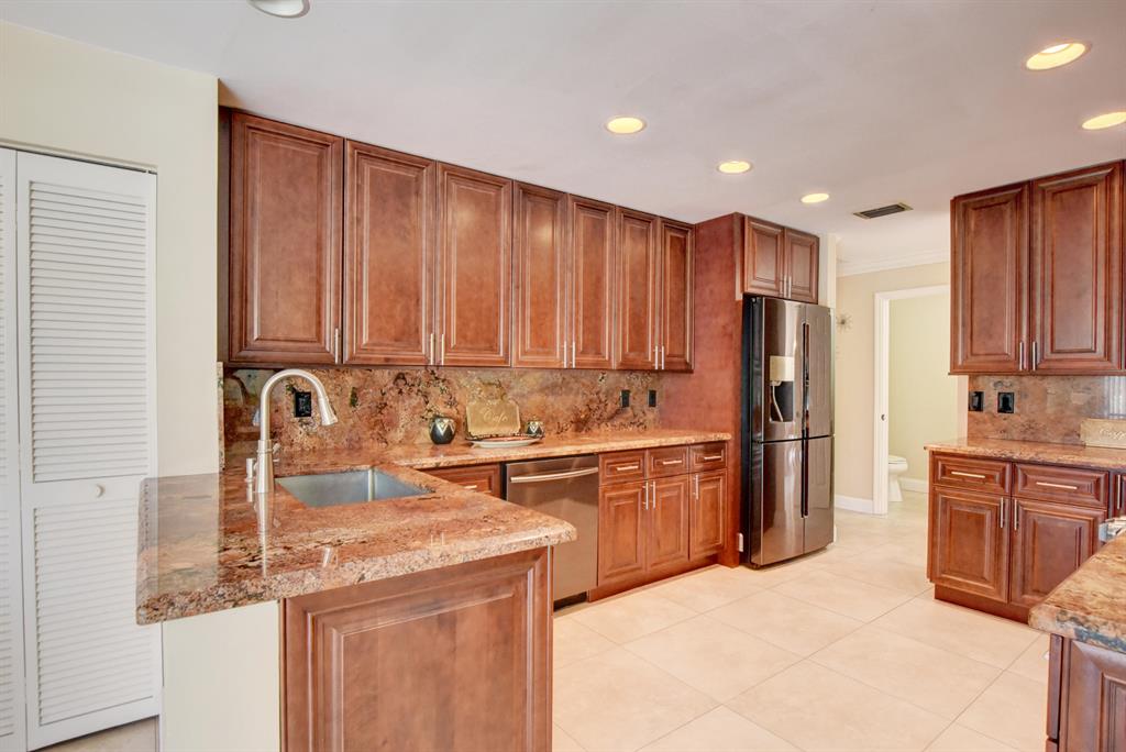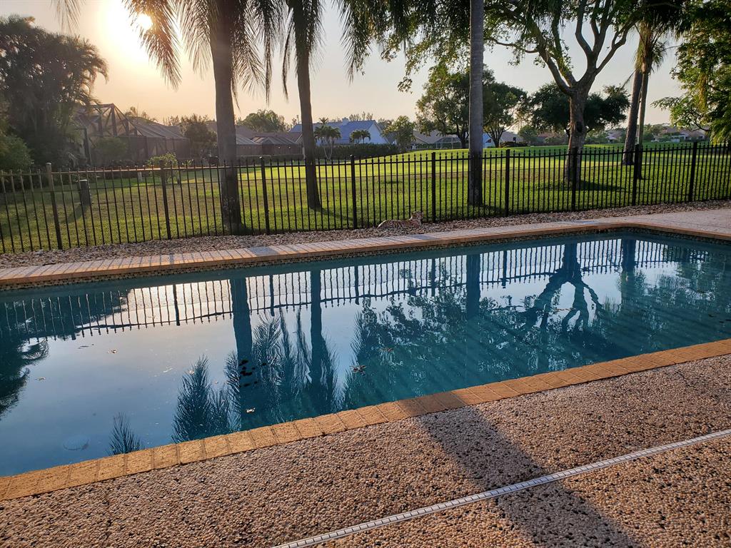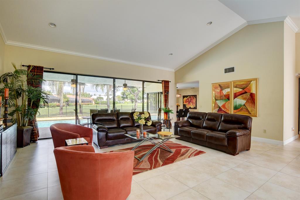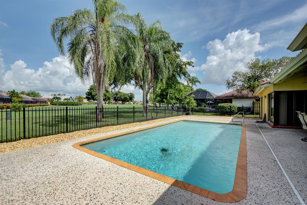 This spacious, spotless, spectacular home is in one of West Boca's premiere country club communities. Great schools! Shopping and dining is only minutes away! Stunning wood kitchen with rare red juperana granite, high end Samsung appliances, smoothe ceilings, oversized tile, bright open floorplan, private pool, lush tropical landscaping, updated bathrooms, golf view, classic Meditteranean architecture, huge smoothe volume ceilings with crown molding. Romantic master retreat with his and hers closets and a stunning master bathroom. Tons of closet and storage space. Beatiful double front doors. All dimensions approximate. Listing agent is related to seller. You will not be disappointed! Old Bridge Trail is a highly desired location in Boca Woods. Membership is MANDATORY.