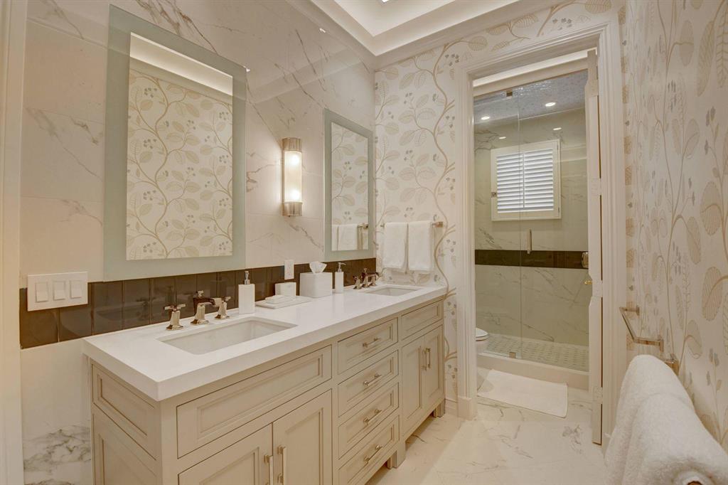 Completely updated with no expense spared, with full transferable golf equity available. Impeccably maintained 6BR/5BA/1HB + office home with a completely renovated backyard, on a cul-de-sac with two driveways and a 5-car garage. Every bedroom is replete with hardwood floors, an en-suite bath, and plantation shutters. The living room features a full bar with Cambria countertops, beverage refrigerator and sink. The kitchen is adorned with Cambria countertops, two sinks, two Bosch dishwashers, two brand new Kitchenaid ovens, a Kitchenaid microwave, and a Thermodor gas stove with grill and griddle. The kitchen is open to the family room which has coffered ceilings, and the breakfast nook has a picturesque view of the backyard.