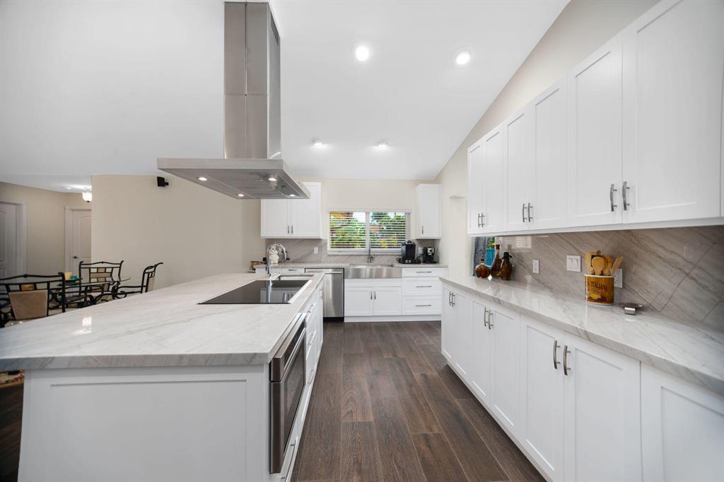 FULLY RENOVATED HOME W/ IMPACT DOORS & WINDOWS IN A FANTASTIC CENTRAL BOCA LOCATION. This home was just redone within the last year w/ all high end modern touches! All light & bright colors schemes throughout, open layout & extra spacious rooms. SqFt added to back of the home to extend the dining room & master suite. Gorgeous contemporary plank tile floors throughout, vaulted ceilings w/ LED hi hats, & a kitchen that is top of the line. The kitchen features white wood, luxor collection cabinets, quartzite counters, & an amazing large Island w/ BOSCH appliances. French impact doors open to a large patio from master, dining & 2nd bedroom w/ room for a pool. Master suite is oversized w/ a large custom walk-in closet, & brand new bathroom w/ dbl sinks & a large glass shower w/ dual delta heads