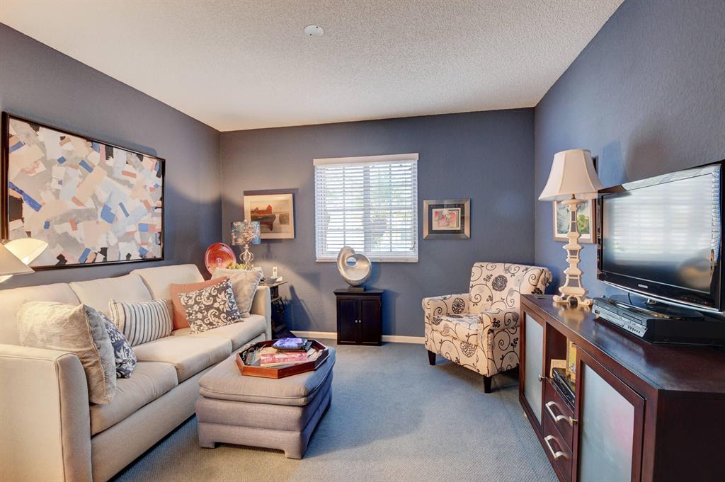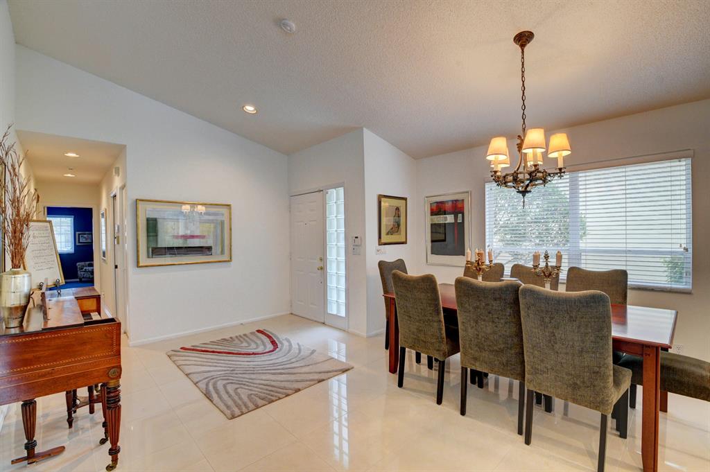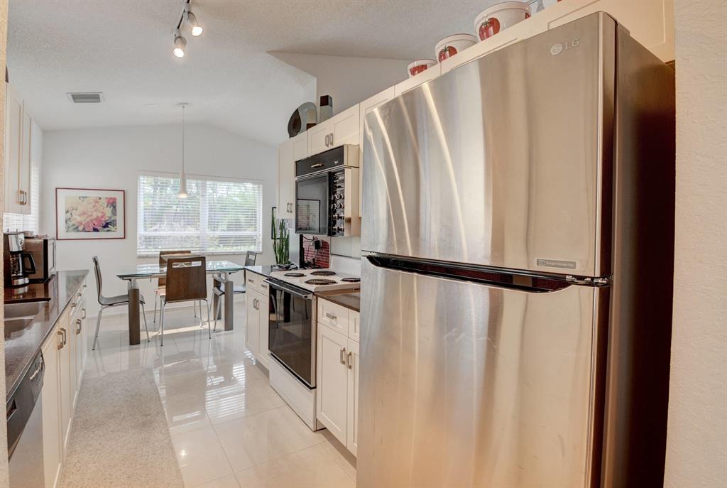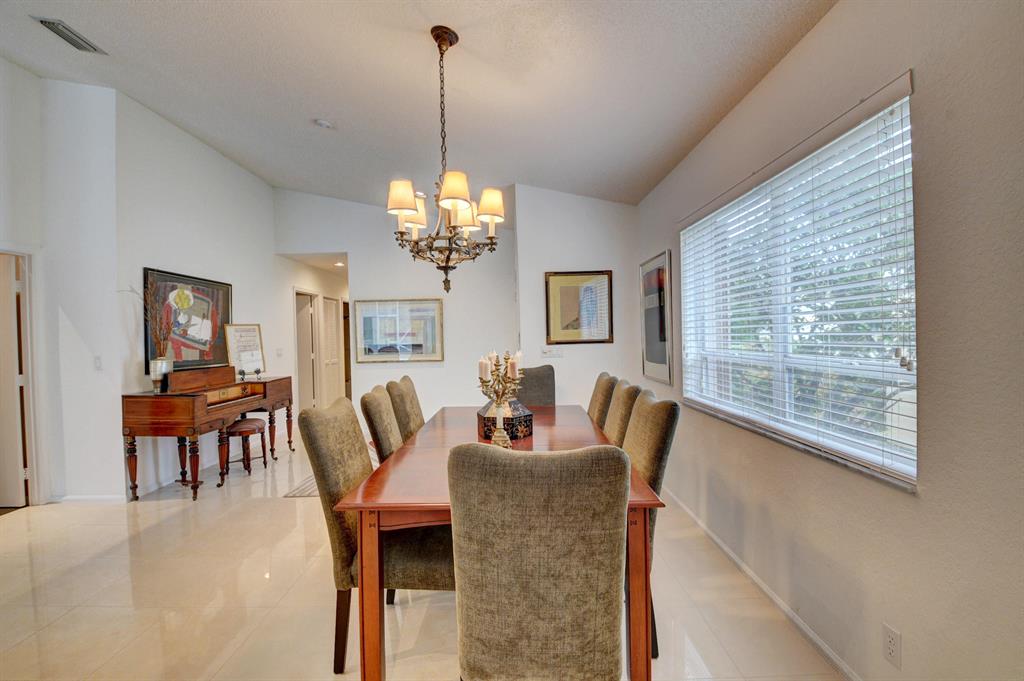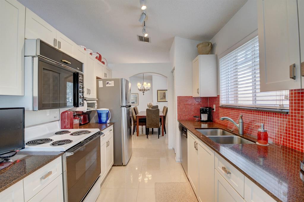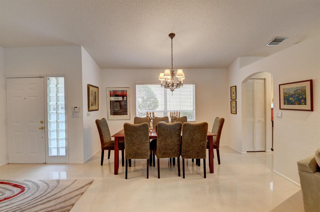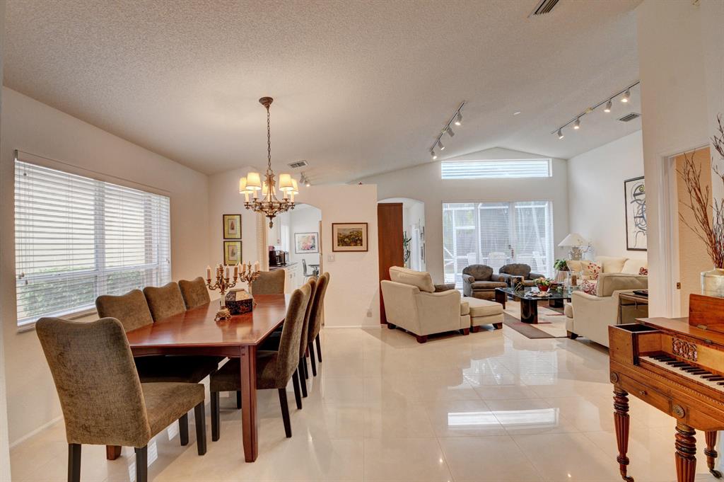 One story home in popular Palms subdivision. This lovely home features a split bedroom floor plan, neutral tile in living areas, updated kitchen with replaced counters, cabinets refaced with custom back splash and refrigerator and dishwasher replaced. Master bedroom has double walk in closets. Master bath has Jacuzzi tub and separate shower. A/C replaced 2019. Roof replaced in 2007. Accordion hurricane shutters through out. Private yard with large screened in patio plus extended patio. 3rd bedroom has perfect built in home office with double desks and lots of drawers and cabinets plus closet. Palms has its own subdivision pool plus maintenance includes cable, alarm, lawn care, pressure cleaning of roof and driveways, painting of exterior of homes and 24 hour manned gate.