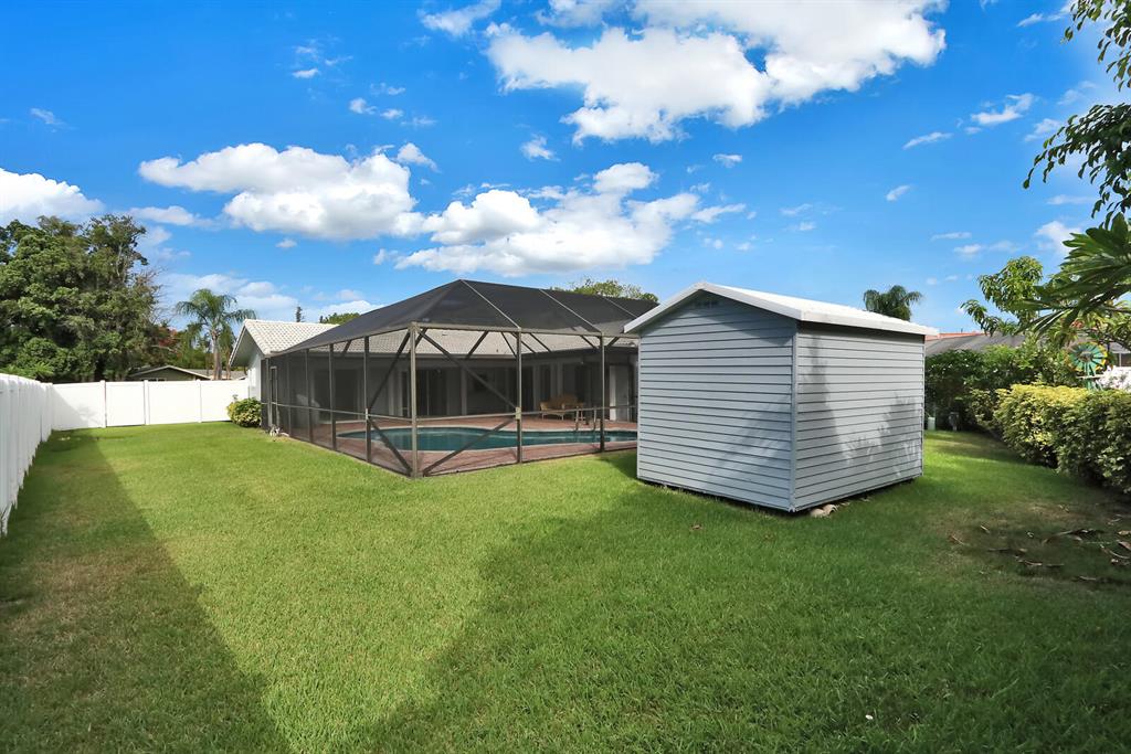 Welcome home! Beautiful four bedroom, two bath pool home in sought after University Park neighborhood in Boca Raton! Situated on a 1/4 acre, fenced lot, one of the largest in the community - the features of this home include a split bedroom floorplan, whole home, natural gas generator, storm shutter protection and more! Large master bedroom with huge walk-in closet and en-suite bath. Well appointed kitchen with newer appliances and Corian countertops. Updated second bathroom with cabana door leading to pool area. This backyard is designed for entertaining with a covered, screen enclosed patio and sparkling pool plus a large shed for storage. Bring your boat or RV to this NO HOA neighborhood in the heart of Boca Raton!