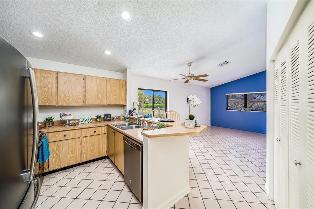 Spacious Pool Home on Waterfront Corner Lot with 4 bedrooms/2 baths/2 car garage. Wow!!! Fenced in back yard/side yard/kidney shaped heated pool has waterfall/tropical paradise! Large covered patio. Great place to enjoy the outdoors, BBQ and throw the ball. Home is Move in Ready & has been very well cared for. Open floor plan w/ vaulted ceilings! Master bedroom on one side, with a huge walk in closet & private lanai off the master En-suite bathroom featuring double sinks, a chair height toilet, grab bar & a walk-in large shower. Three additional bedrooms on the other side. Family room, living room & dining room!! Bright & clean kitchen w/newer GE Adora slate appliances including French door refrigerator. Large pantry with double doors. Extra outdoor space off kitchen & family room.