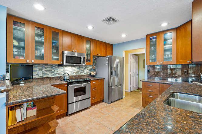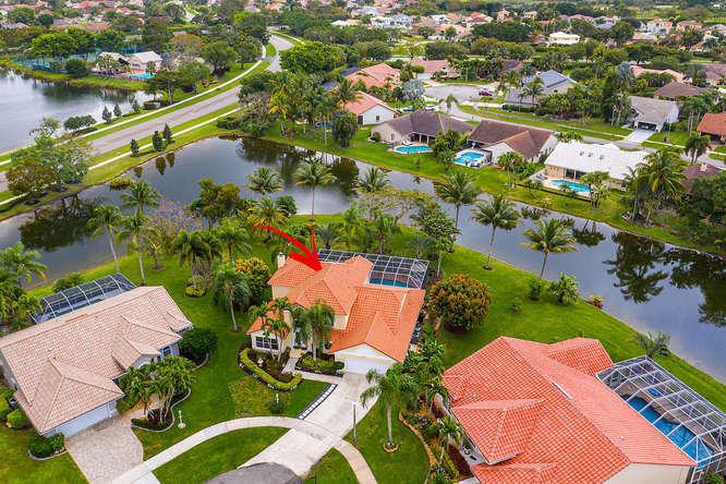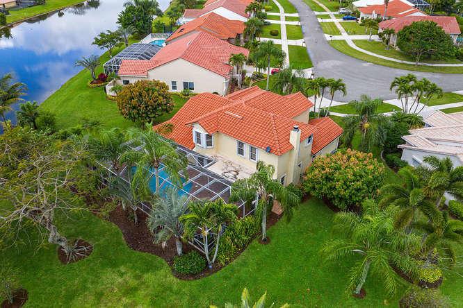 WELCOME HOME to the LARGEST and most BEAUTIFUL LOT in HARBOUR LAKES. SPECTACULAR water views abound on this nearly 1/2 ACRE of manicured lakefront property. Enjoy coffee on your oversized patio with screened in lanai that overlooks your heated pool and gorgeous lake, and pick fresh fruit from your mango, lychee, avocado, orange and grapefruit trees. Step inside your DREAM home perfect for entertaining. There are 5 bedrooms, 4 updated bathrooms, a large family room with updated Coquina fireplace and wet bar, as well as a library with double french doors and den. The functional kitchen has updated wood cabinets and granite counters. Master Suite is DOWNSTAIRS! Newly painted in and out. 5TH bedroom was converted to a loft. Please call for a personal tour or a virtual tour beginning 3/21