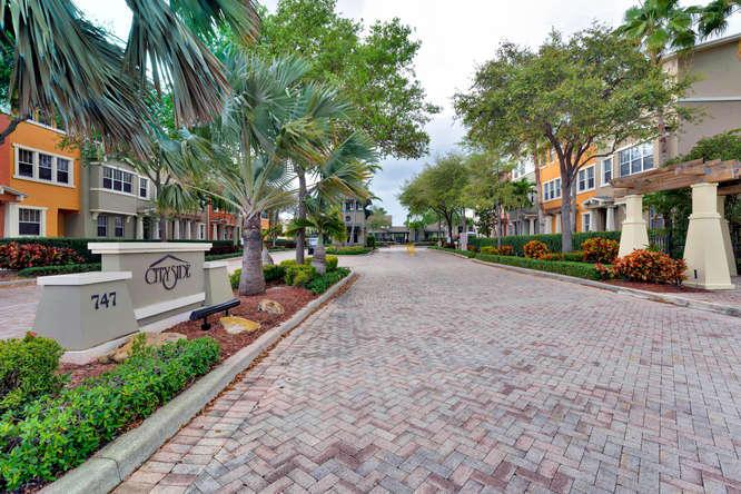 Simply Stunning. The owners have renovated and updated this now incredible townhome in exquisite detail. The photos do not come close to doing this beauty justice! The interior of this home is magic! BRAND NEW GOURMET KITCHEN & APPLIANCES, too! New lighting! New paint, Carrara Marble counters, Custom Plantation blinds and more! Cityside is the best kept secret in WPB! 24-Hour Manned Gate & Patrol, HOA includes exterior + roof, cable (high-speed), onsite mgt, so much more! Clubhouse with Gym, Resort Pool, Community Room, Exercise Room all on the lake. Jog/Bike by the private lake! Close to EVERYTHING! Outlet Mall, Whole Foods, Kravitz Center, Convention Center, Palm Beach, CityPlace!