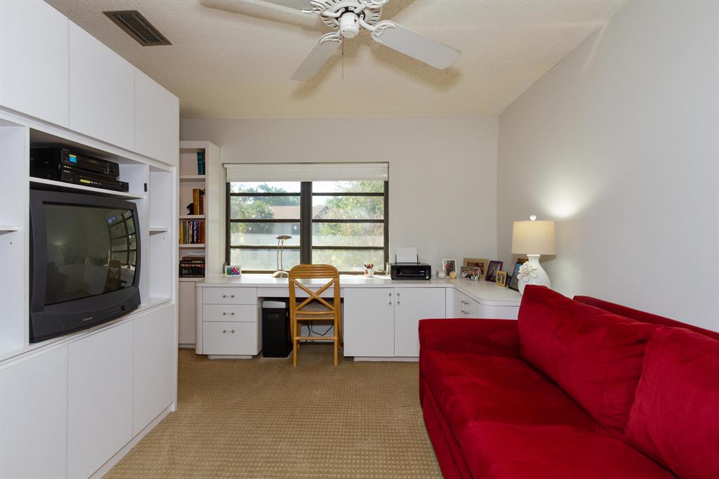 This two bedroom/two and one half bathroom townhome in the Horizons of Boca Lago has lush green golf course views. A sun-drenched glassed-in porch brings the outdoors in. The spacious open floor plan includes a living room/dining room and a bright white well appointed kitchen with adjacent atrium. Many recent upgrades include LG wash/dryer, Bosch dishwasher and new flat roof. Closet space and storage are abundant. A golf membership is not required with purchase. All ages are welcome and one pet up to 30 pounds.