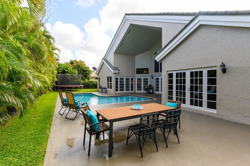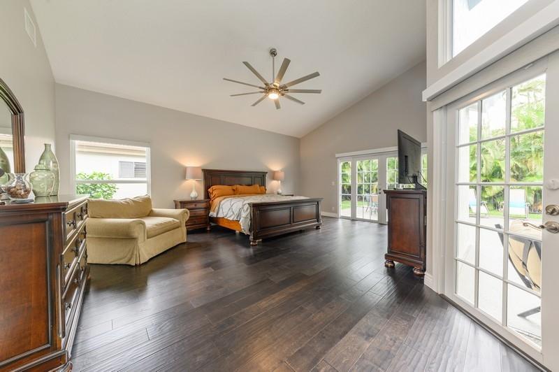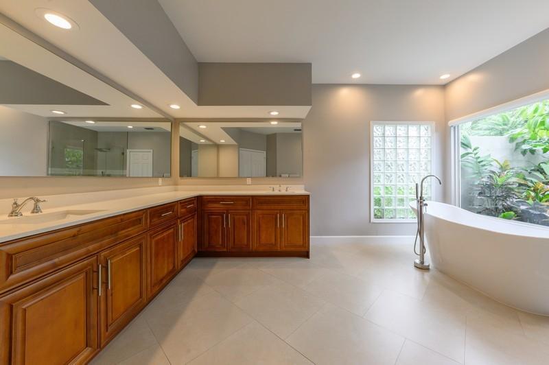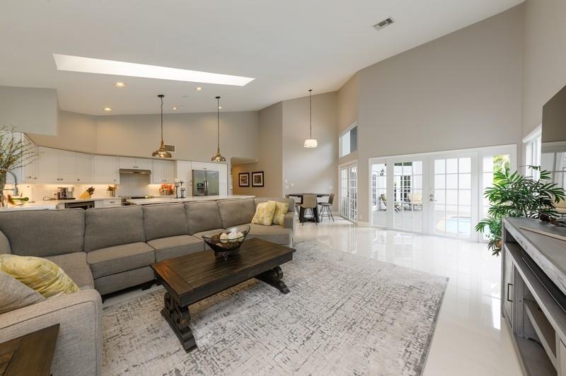 Designer renovated pool home with 5 bedrooms and 4 full baths with nearly 4,000 square feetunder air. Impact windows have been installed throughout. Not a speck of carpet can be foundas the home boasts a combination of newer 32x32 tile and wood floors. The moment you walkthrough this home's double-door entry, you'll know you must make this place your own. Agrand, twisting staircase highlights an airy two-story foyer. The foyer leads to a formal livingroom with a full wall of windows and French doors overlooking the L-shaped pool. To your right is a formal dining roomwith another set of French doors opening to a side patio. Next is spacious kitchen with abreakfast bar island, newer appliances and a stainless steel farmhouse sink.