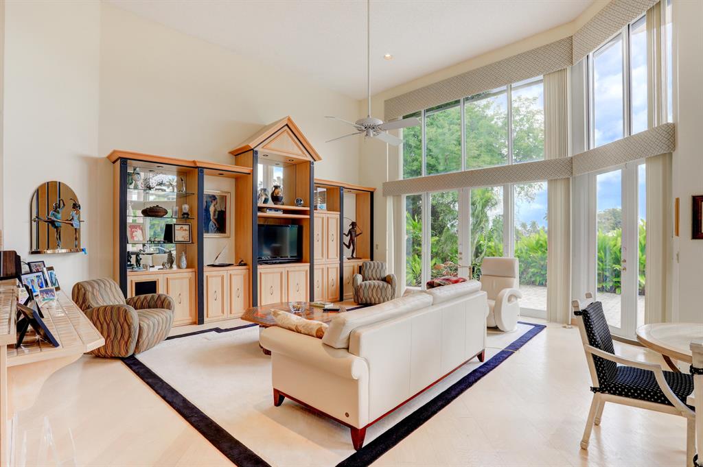 Fantastic panoramic views of golf course and lake vistas for this 3 bedroom + office home with 3.5 car garage. Extras include impact glass throughout, a full-house generator, clean lines, very bright with lots of windows, wood floors, French doors with screens, automated outdoor sun shades, and more. Spacious and bright living room with wet bar. Kitchen features a Thermador convection oven and extra-large pantry, and is open to the beautiful family room and breakfast area, all of which offer fabulous views. Split bedroom plan with large master and generous closets, his and her baths plus a separate vanity area. Two guest bedrooms + 2 baths comprise the guest wing. Resort style pool, covered and open patio areas. SEE MORE